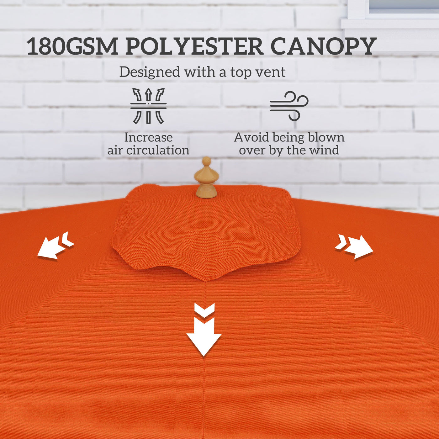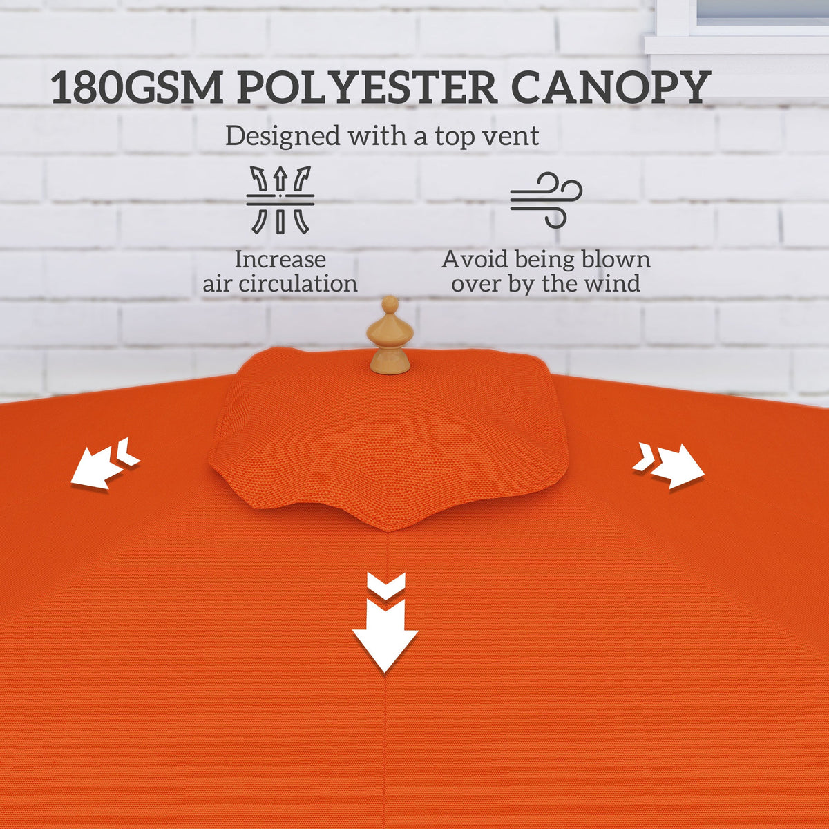 Protect yourself outdoors in ultimate style with this Outsunny 2m parasol. The 180g polyester canopy provides plenty of sun protection, and the angle can be adjusted - keep shaded throughout the day. The fir wood structure means a strong and beautiful core, with eight bamboo ribs underneath the canopy for extra support. It's finished with a pull rope to open and close the canopy easily.