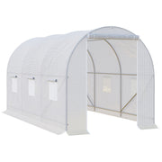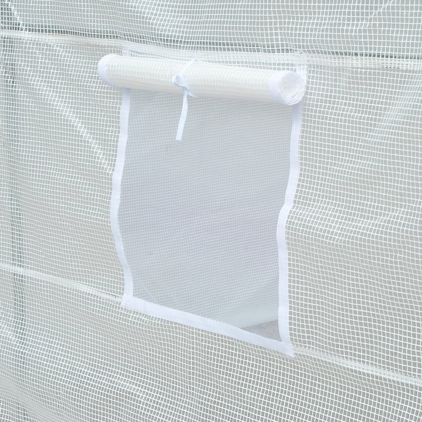 Outsunny 3.5 x 2 x 2 m Polytunnel Greenhouse, Walk-in Green House for Garden with Mesh Windows, Galvanised Steel Frame, White - White