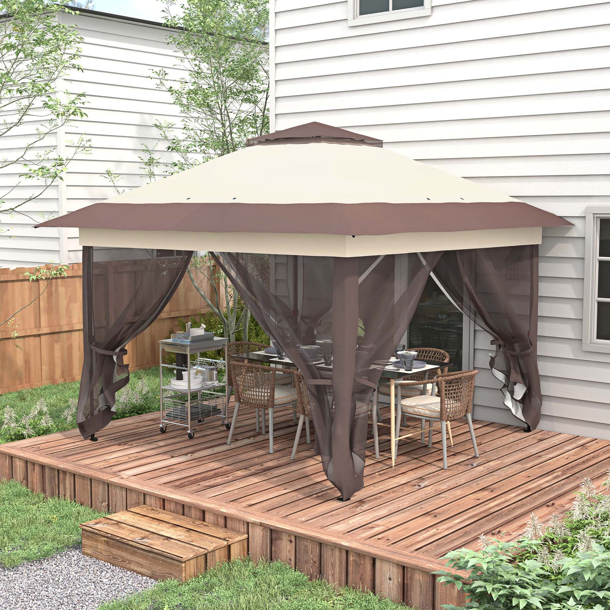 Outsunny 3.6 x 3.6 m Pop up Gazebo with Netting, Height Adjustable Party Tent Instant Canopy Sun Shade Shelter, Khaki - Khaki