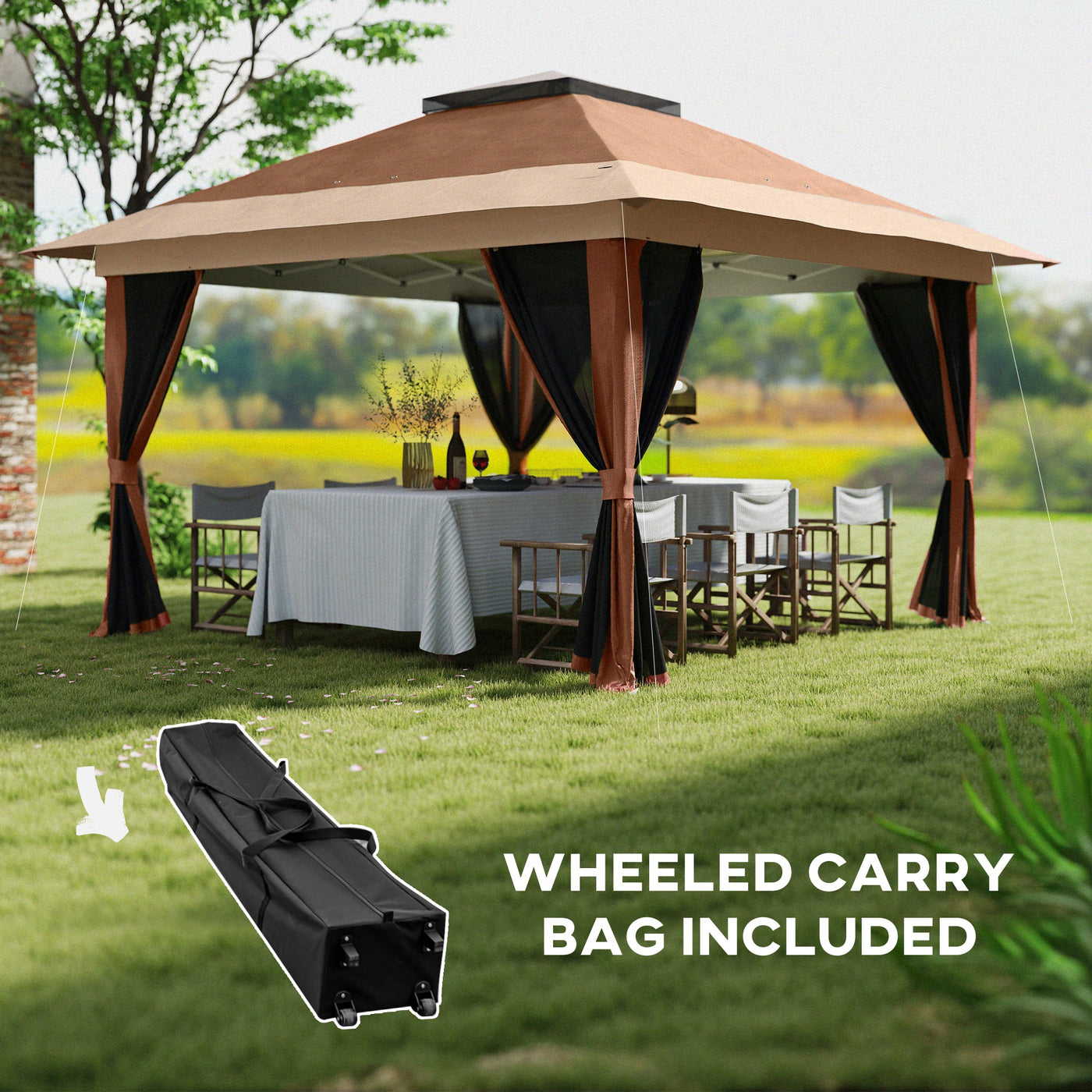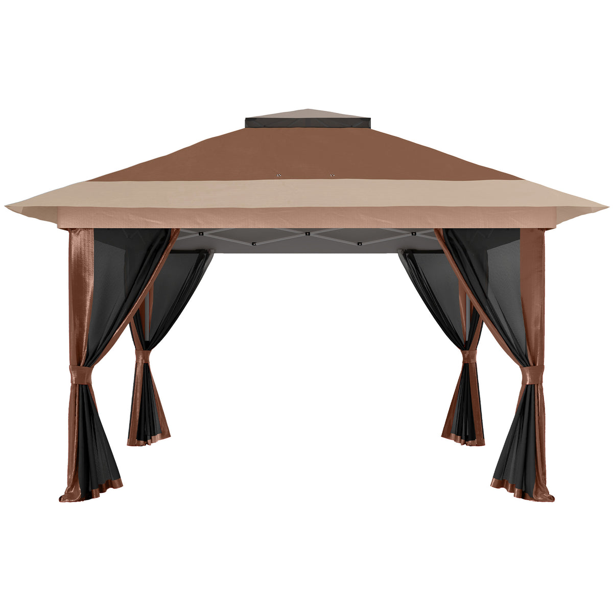 Outsunny 3.6 x 3.6m Pop-Up Gazebo, with Accessories - Brown - Brown