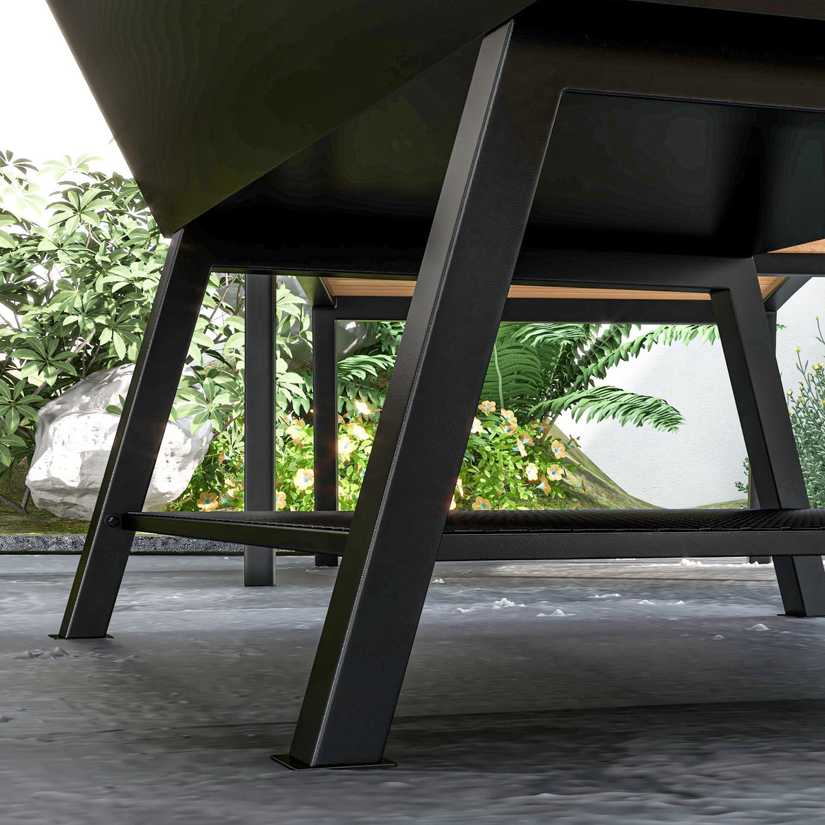 Combining a fire pit, grill, and rotisserie in one, Outsunny charcoal grill gives you more for your outdoors. You can adjust the rotisserie height to control the smokiness of your meat. It features a mesh lid that prevents sparks and debris from flying out for safety. The bottom mesh shelf keeps your coal, plates and BBQ tools within reach. A great addition to your summertime parties, BBQs, picnics and more.