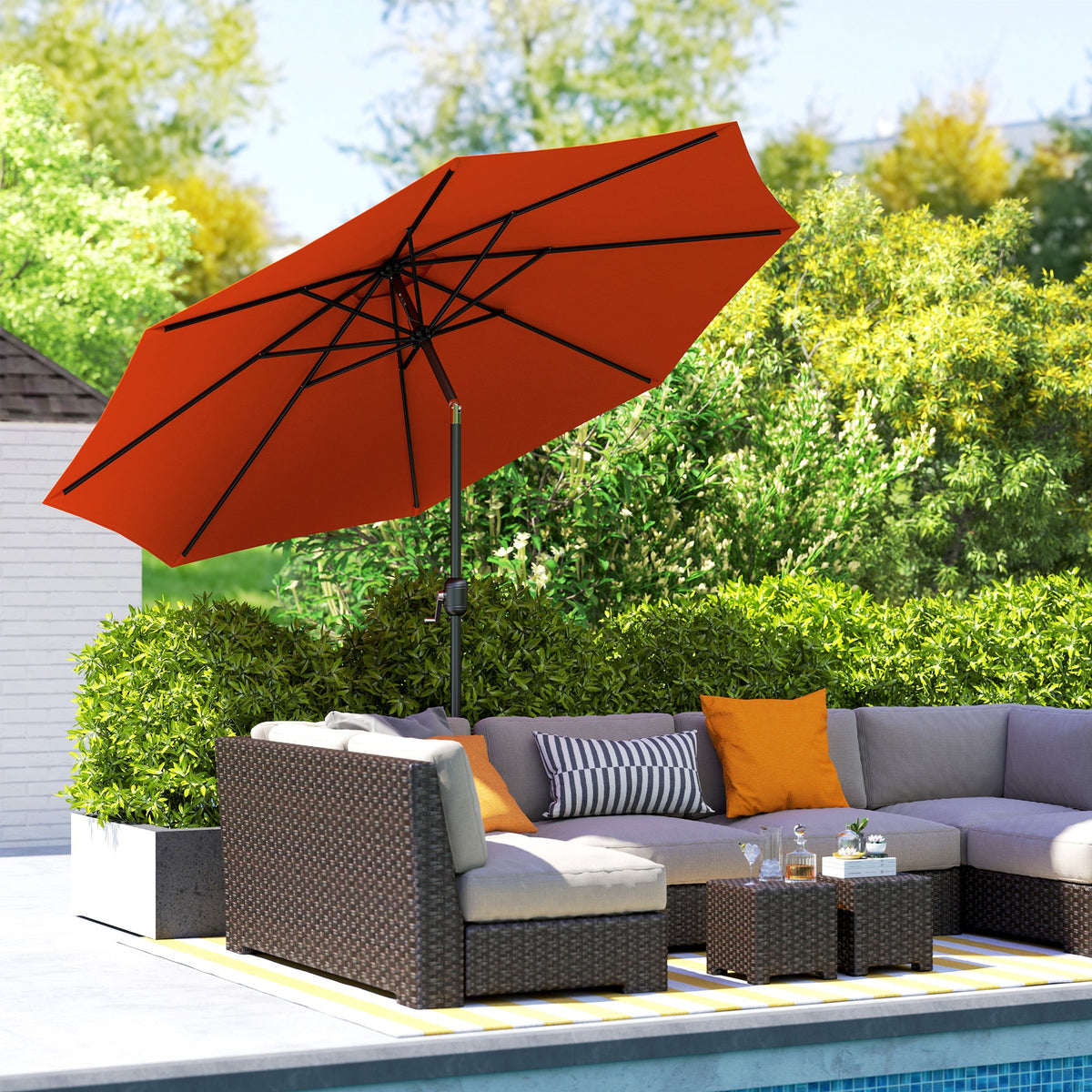 Outsunny 3 m Garden Parasol Umbrellas, Outdoor Sun Shade with 8 Ribs, Tilt and Crank Handle for Balcony, Bench, Garden, Orange - Orange