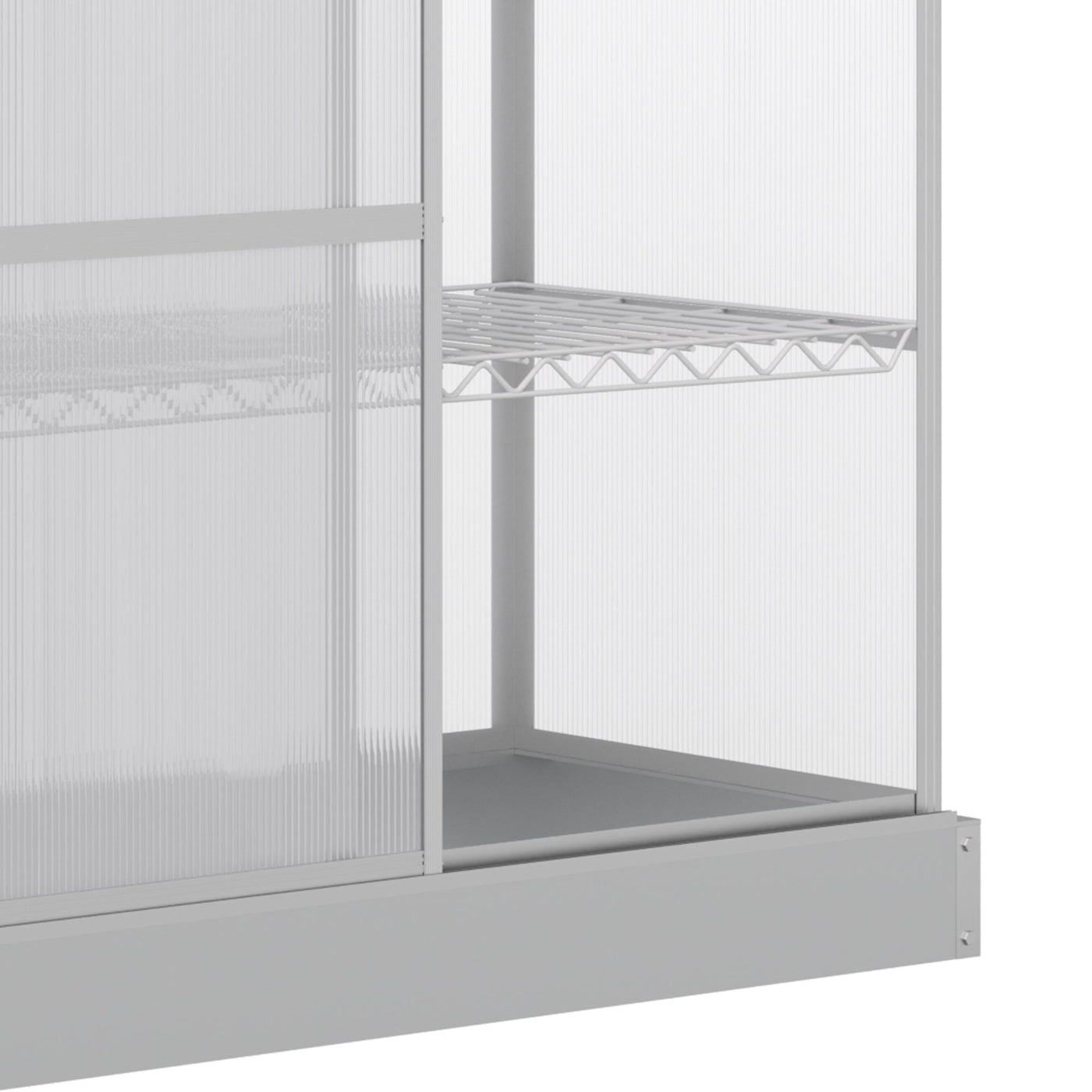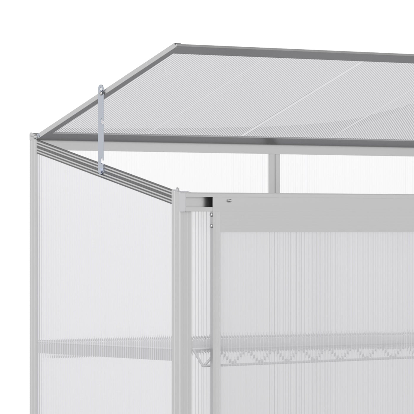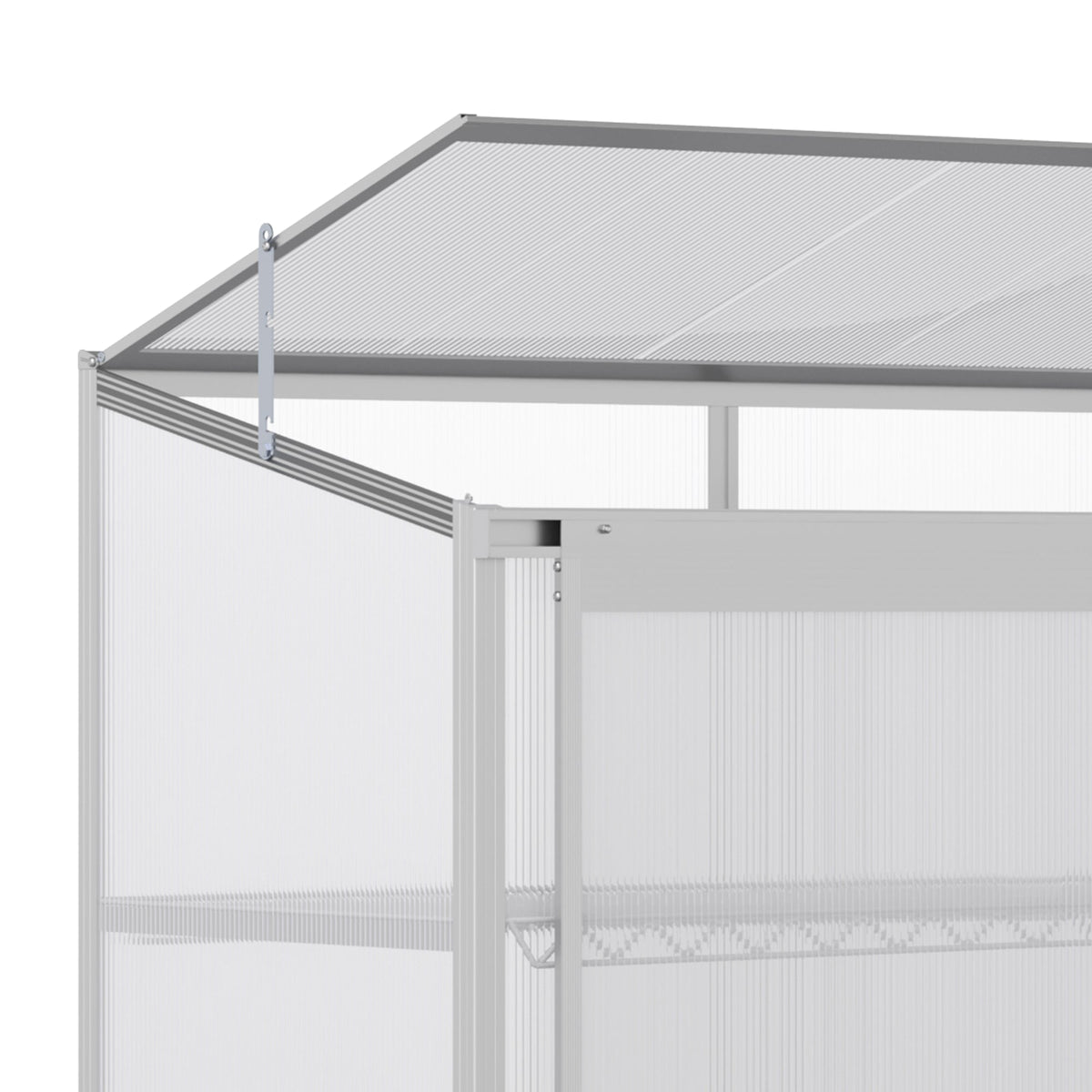 Give your plants and vegetables somewhere to enjoy the sunshine and grow heartily, thanks to this Aluminium Greenhouse from Outsunny. Small aluminium cold frame provides strength, with the polycarbonate panels protecting the inside from medium wind and rain, whilst allowing the sunlight to pass through. Inside two shelves are placed for organisation, with a lift-up lid and sliding door for easy access.