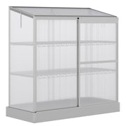 Outsunny 3 Tier Greenhouse Garden Outdoor Cold Frame Plant Flower Growth Transparent Polycarbonate Board Openable Roof Sliding Door w/ Foundation 131L x 58W x 140H cm - silver