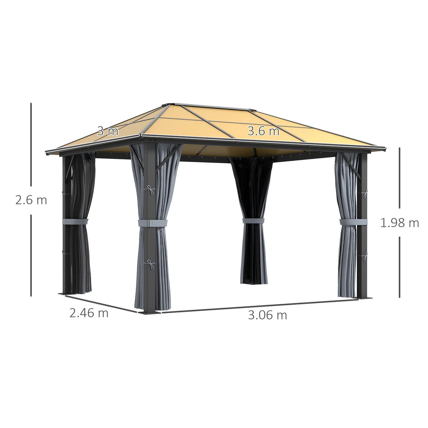 Outsunny 3 x 3.6m Garden Aluminium Gazebo Hardtop Roof Canopy Marquee Party Tent Patio with Mesh Curtains & Side Walls - Grey - Grey