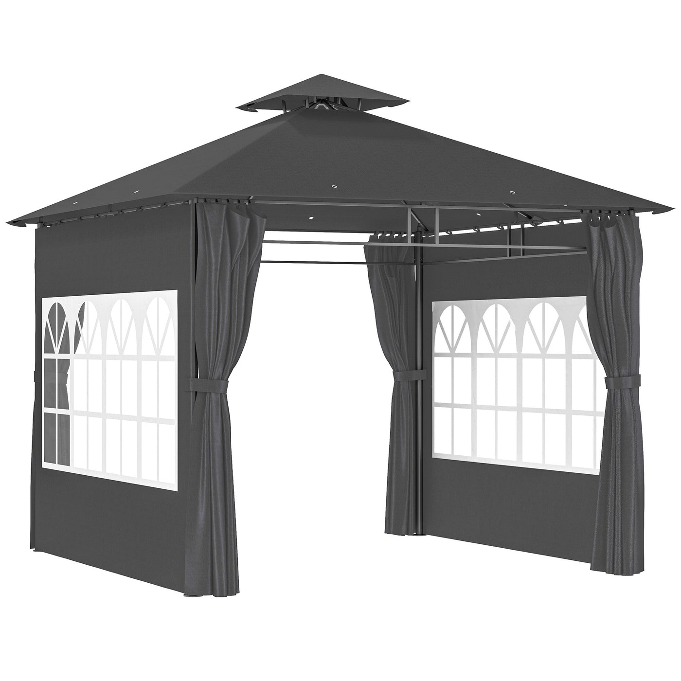 Outsunny 3 x 3 m Garden Gazebo, Double Roof Metal Gazebo with Removable Sidewalls and Church Windows, Outdoor Canopy Shelter, Dark Grey - Dark Grey