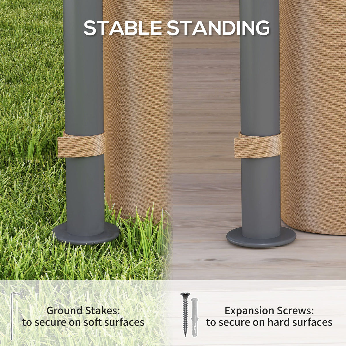 From day to night, this Outsunny garden shelter is here to bring all your favourite people together. It's fitted with solar-powered LED lights: charge under the sun to use at night without any electric required. The two-tier splash-resistant canopy allows air out, with grommet holes so rainwater doesn't build up. Complete with removable curtains to create an open or closed atmosphere easily.