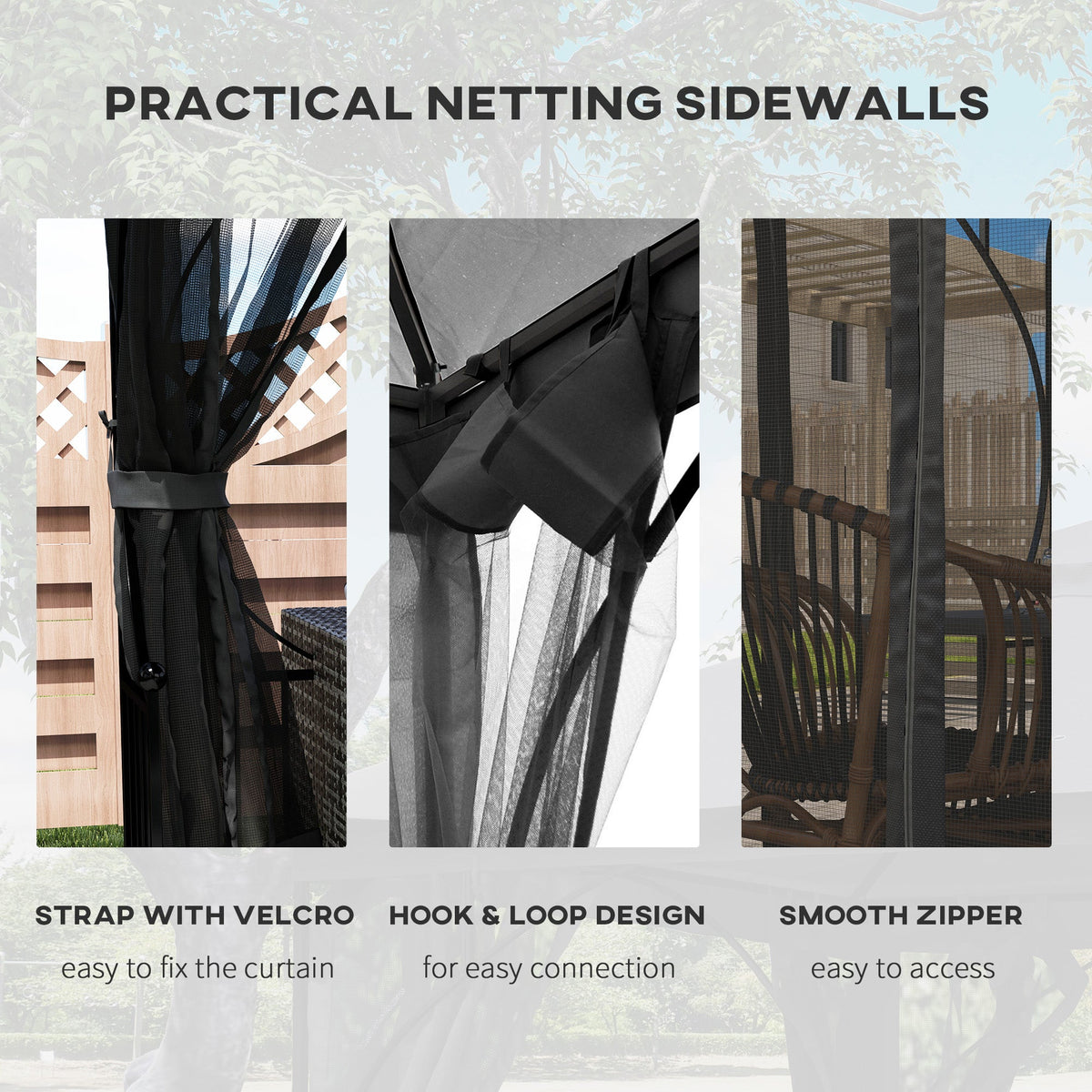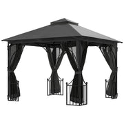 Outsunny 3 x 3m Garden Gazebo Patio Party Tent Shelter Outdoor Canopy Double Tier Sun Shade with Metal Frame and Netting, Dark Grey - Dark Grey