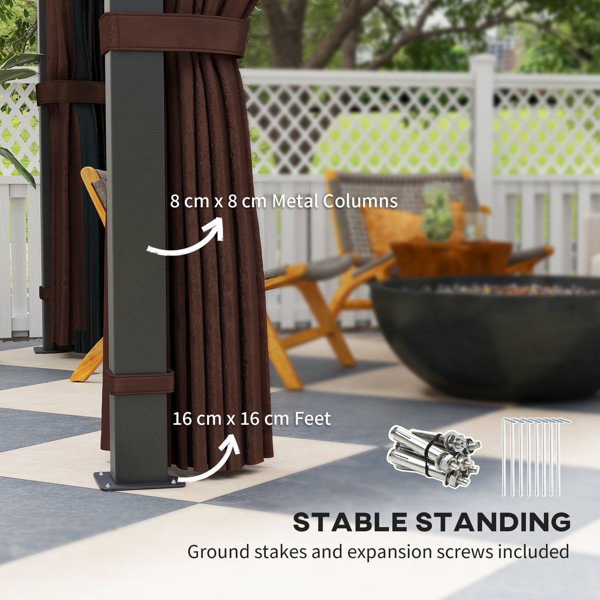 Outsunny 3 x 3(m) Hardtop Gazebo Canopy with 7mm Double Polycarbonate Roof, Garden Gazebo Permanent Pavilion with Mosquito Netting and Curtains for Patio, Deck, Brown - Brown