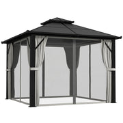 Transform your garden into a haven with the Outsunny polycarbonate gazebo. Featuring 6mm thick polycarbonate panels, this waterproof gazebo shields you from UV rays while keeping you cool with its clever two-tier airflow design. Stop the sun at any angle and get rid of unwanted winged guests with curtains and nettings. Enjoy a serene outdoor shelter with sides, great as a heavy-duty, permanent fixture for any patio.
