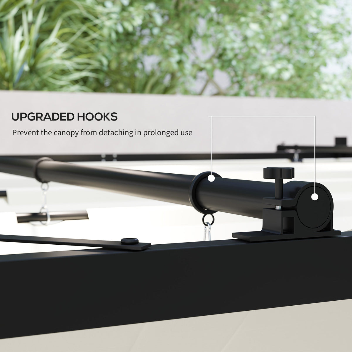 Let the sun shine through how you want, as you gather round inside with this Outsunny 3 x 3(m) retractable pergola. It's fitted with a retractable fabric canopy: set it to a position of your choice. It provides UPF30+ protection for safety and has a magnetic pad to secure in place. A powder coated steel pergola means a strong core, with thick leg ends for extra sturdiness.