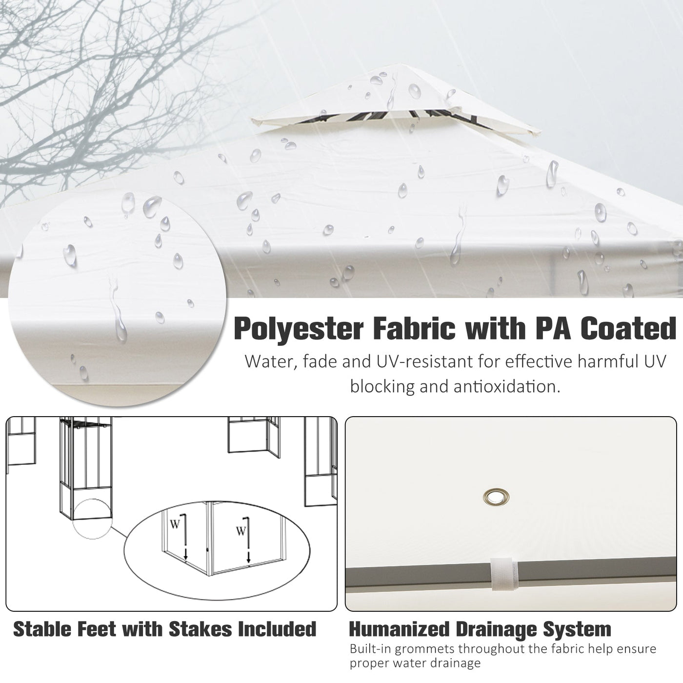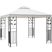 Outsunny 3 x 3m Outdoor Steel Gazebo with 2 Tier Roof, Garden Gazebo Patio Canopy Marquee Shelter with Decorative Steel Frame - Cream - Cream