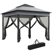 Outsunny 3 x 3(m) Pop Up Gazebo, Height Adjustable Instant Event Shelter with Netting and Carrying Bag, Grey - Grey