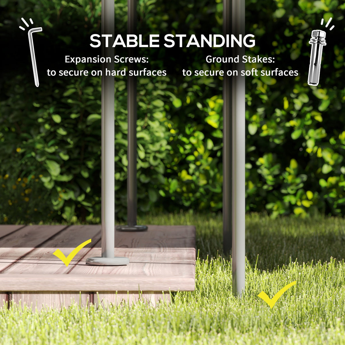 This Outsunny gazebo is a place for plenty outdoors: gatherings, parties - or even as a place to relax on a sunny afternoon. The metal frame means a strong core, fitted with removable curtains to create a private or open feel - as you wish. Thanks to the two-tier roof air gently leaves to reduce canopy stress. Package comes with 4x guy ropes, 16x ground stakes and 12x expansion screws, great as a garden shelter or hot tub gazebo for any outdoor space!