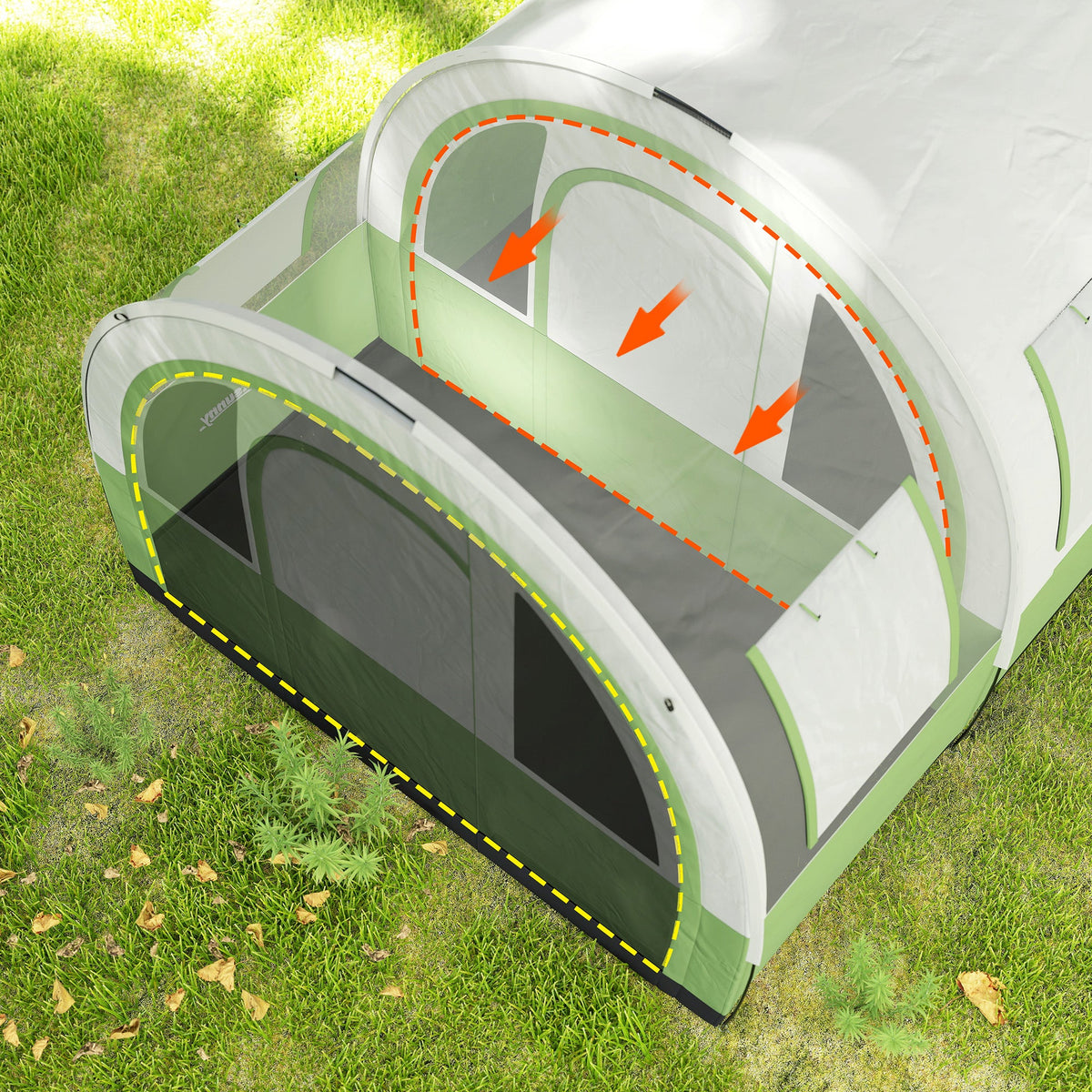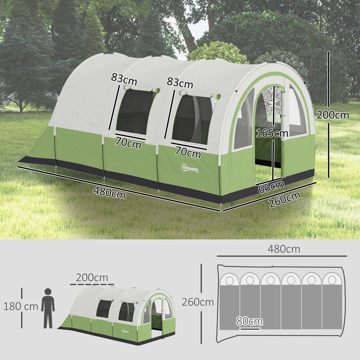 Outsunny 3000mm Waterproof Camping Tent, 5-6 Man Family Tent with Living and Bedroom, Carry Bag Included, Cream and Green - Cream, Emerald Green