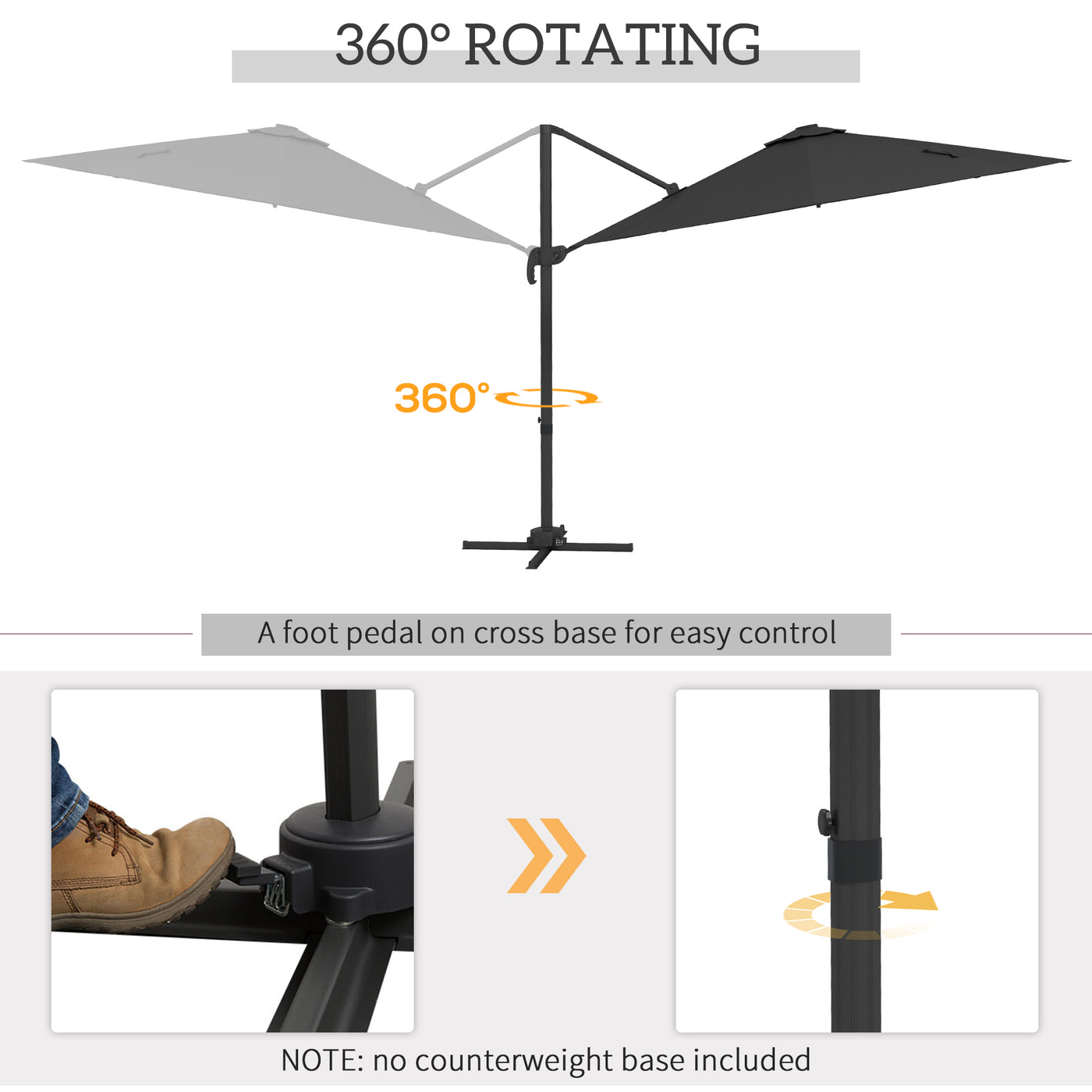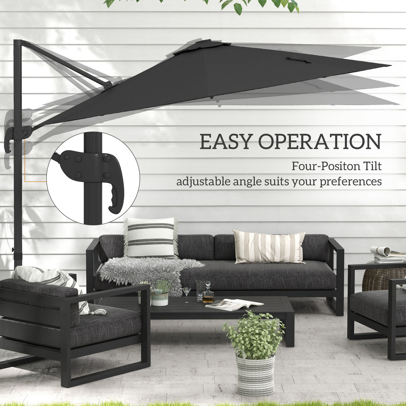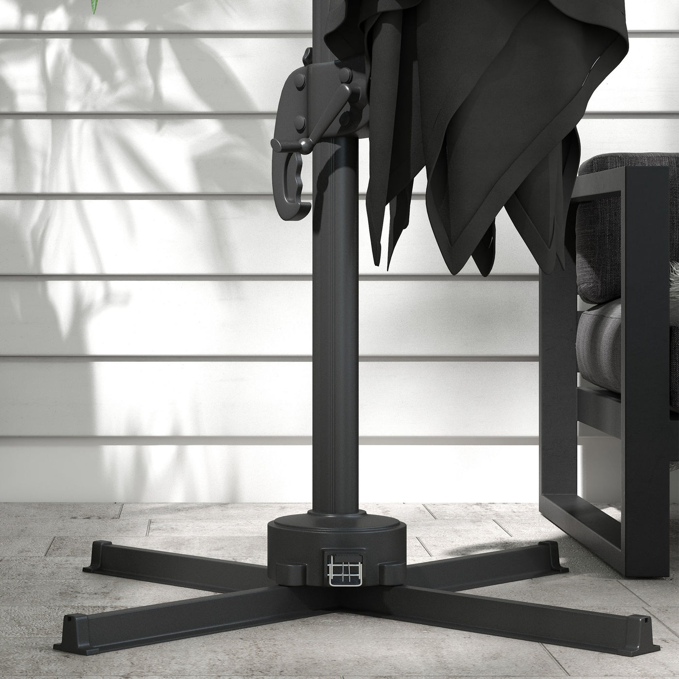 Outsunny 3(m) Adjustable Cantilever Parasol with Base, Solar LED Lights, Dark Grey - Dark Grey