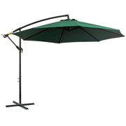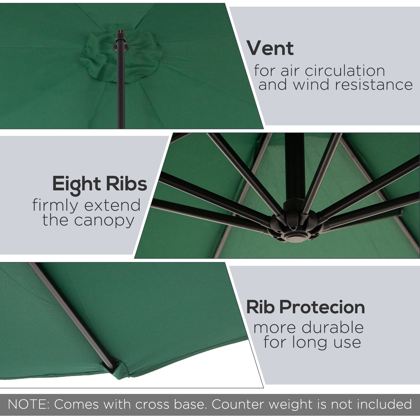 Outsunny 3(m) Banana Parasol Hanging Cantilever Umbrella with Crank Handle, 8 Ribs and Cross Base for Outdoor, Sun Shade, Dark Green - green