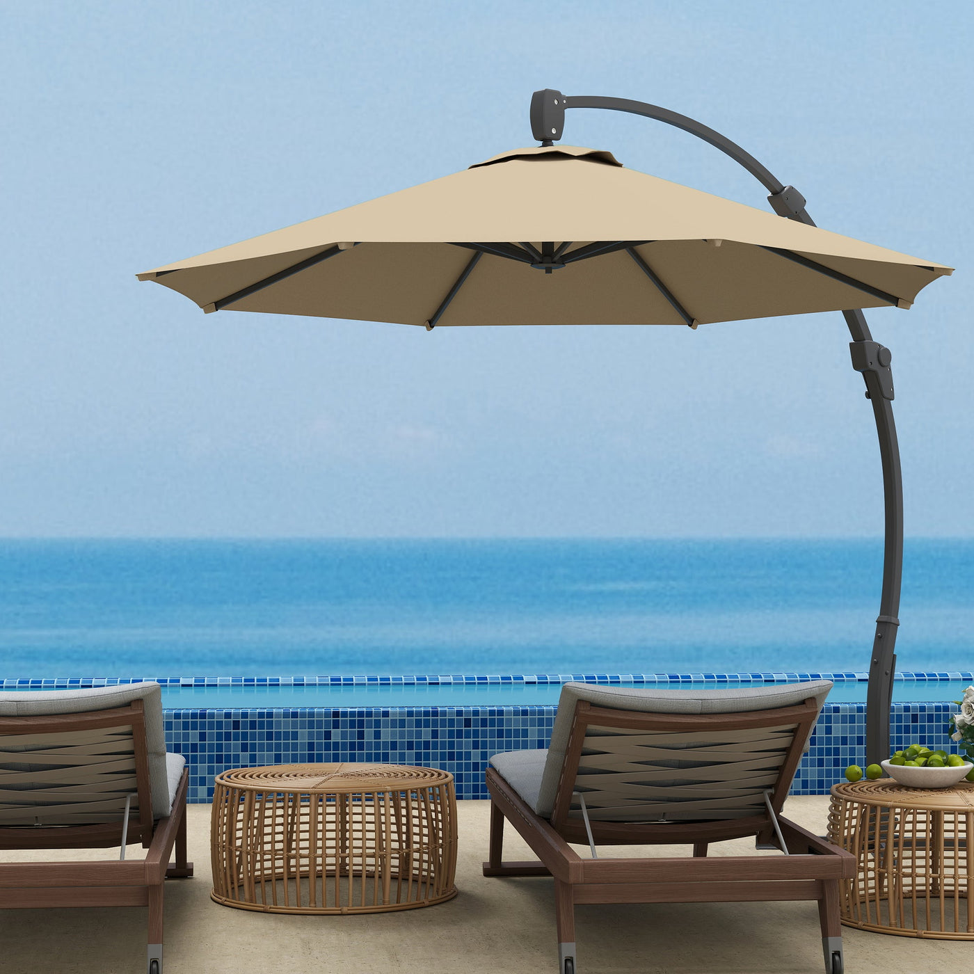 Outsunny 3(m) Garden Cantilever Parasol, Round Overhanging Umbrella with Crank Handle, Cross Base, Aluminium Frame and 360° Rotation, Banana Patio Umbrella for Outdoor Sun Shade, Khaki - Khaki
