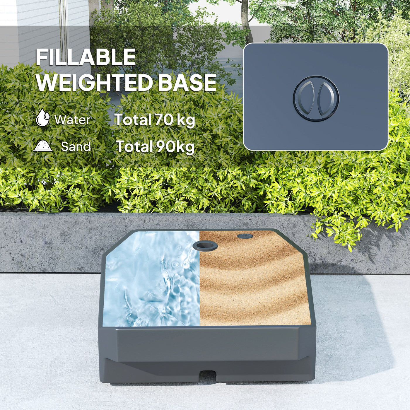 Relax in style with this Outsunny garden parasol with base included, designed for both durability and comfort. A fillable base to provide exceptional stability, while 2 wind ropes keep it firmly in place in breezy conditions. The included protective cover ensures your umbrella stays clean and ready for use. With UPF50+ sun protection, enjoy full-day shade without worrying about harmful UV rays. Great for patios, gardens, or outdoor gatherings, this parasol can keep you cool and safe in the sun.