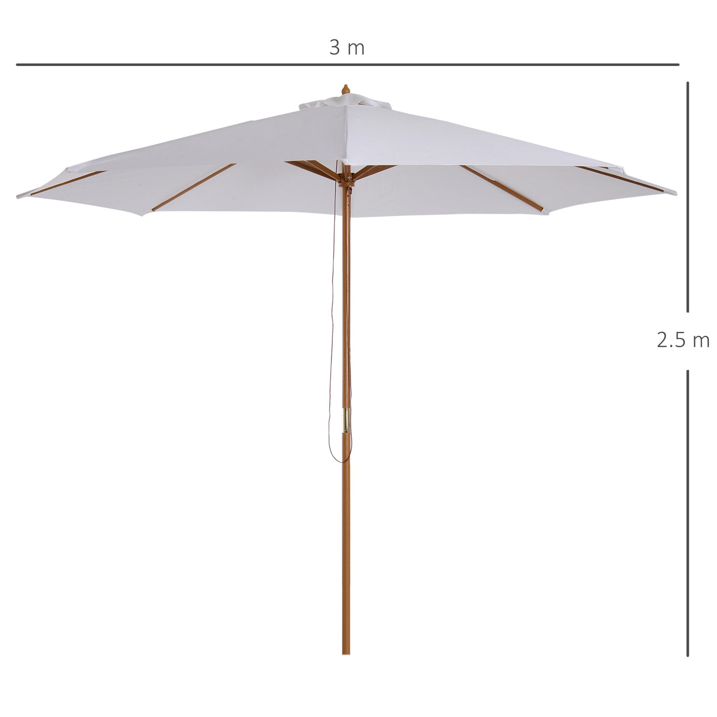 Outsunny 3(m) Garden Parasol, Pulley Operated Patio Umbrella, Wooden Table Market Umbrella with Rope Pulley Mechanism and 8 Ribs, Cream White - Cream