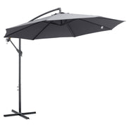 Outsunny 3(m) Garden Parasol Sun Shade Patio Banana Hanging Umbrella Cantilever with Crank Handle and Cross Base Grey - Grey