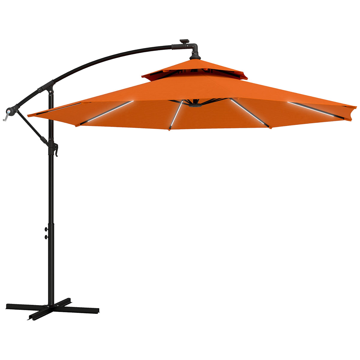 Outsunny 3m LED Light Overhanging Parasol - Orange - Orange