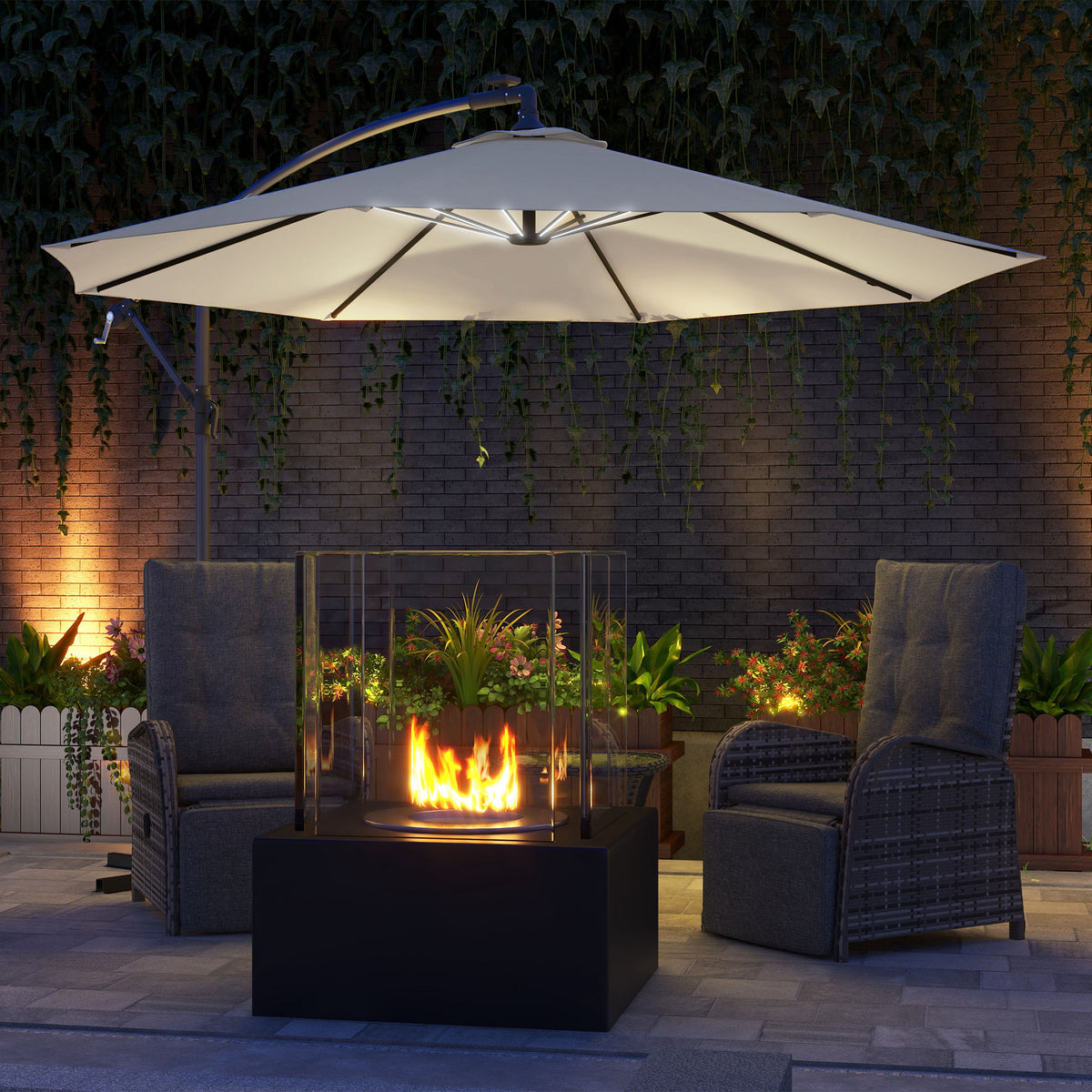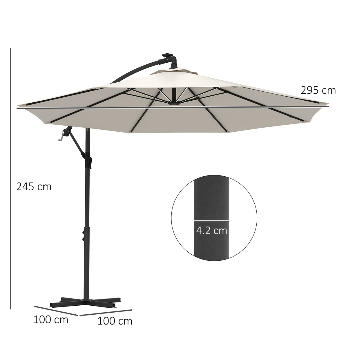 Make the summer evenings last longer with this Outsunny LED parasol. Eight solar powered LED strips under the canopy provide soft light when the sun goes down, without requiring a battery. The steel frame is strong so it stands steady; eight ribs attached to the canopy offer plenty of support. The garden umbrella parasol is finished with a crank handle to open and close the canopy quickly – great for when you need shade instantly.