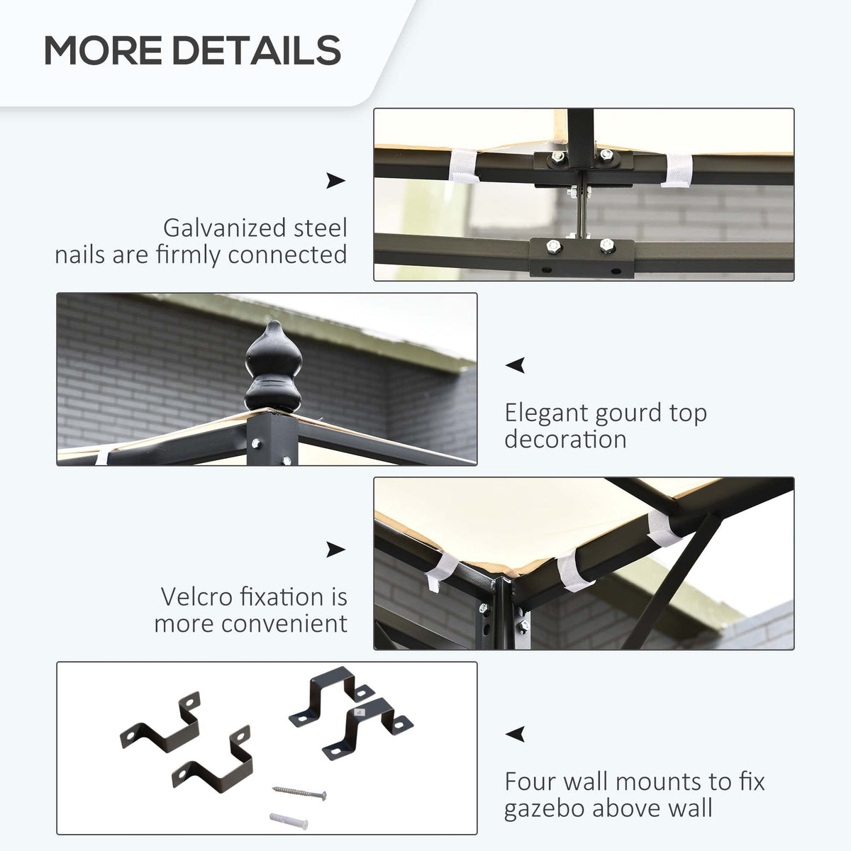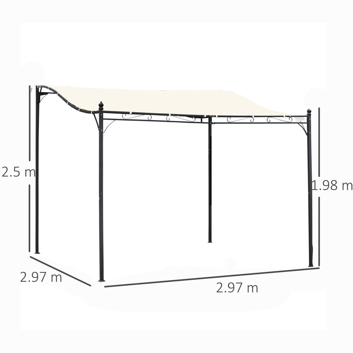Give yourself a spot to take shade and shelter outdoors with this pergola-style gazebo from Outsunny. Using powder-coated metal to form a frame which is tough and resistant, it is crafted into a 250 x 297cm design, consisting of a taller back and short front, with a waved connecting frame covered with a top 180gsm polyester canopy, providing shelter against UV rays and light wind and rain. With an elegant scroll design on the front, it’s finished with four drainage holes on the top to prevent water build up, and comes with eight ground stakes to pin to the ground.