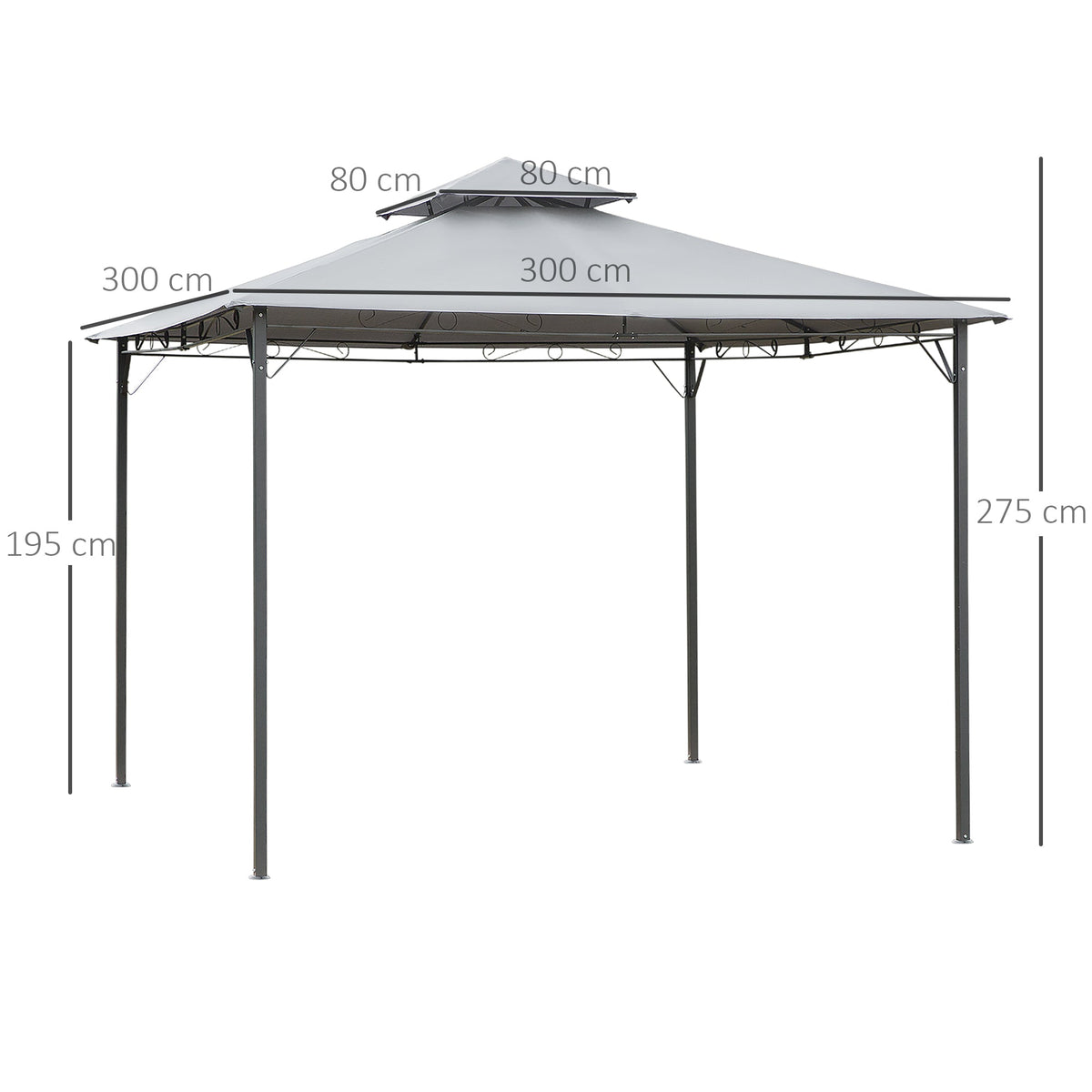 Outsunny 3x3(m) Outdoor Patio Gazebo Steel Canopy Tent Pavilion 2-Tier Roof Top Garden Sunshade Grey - Grey