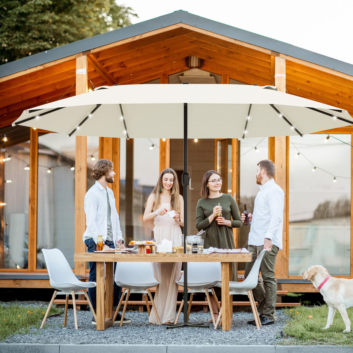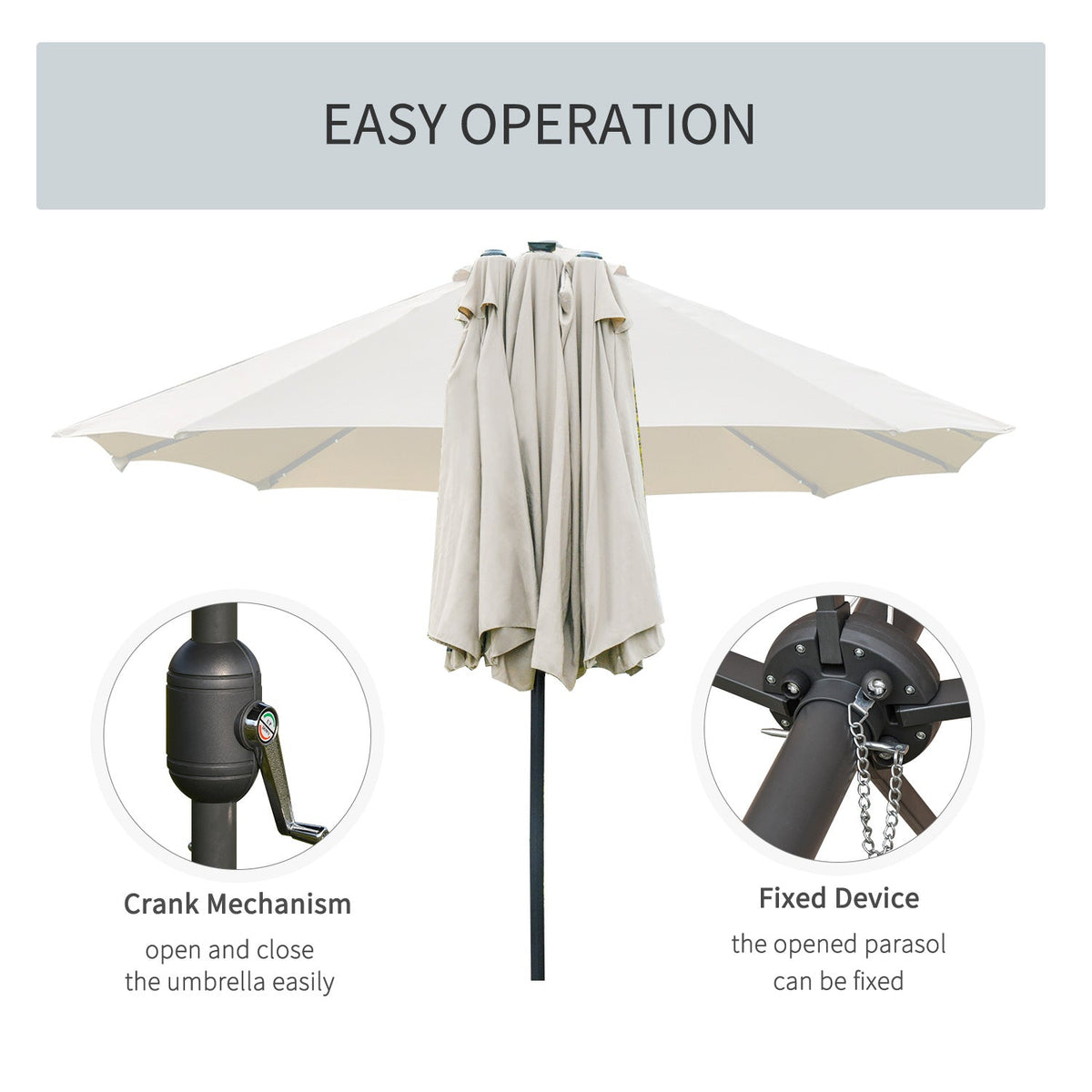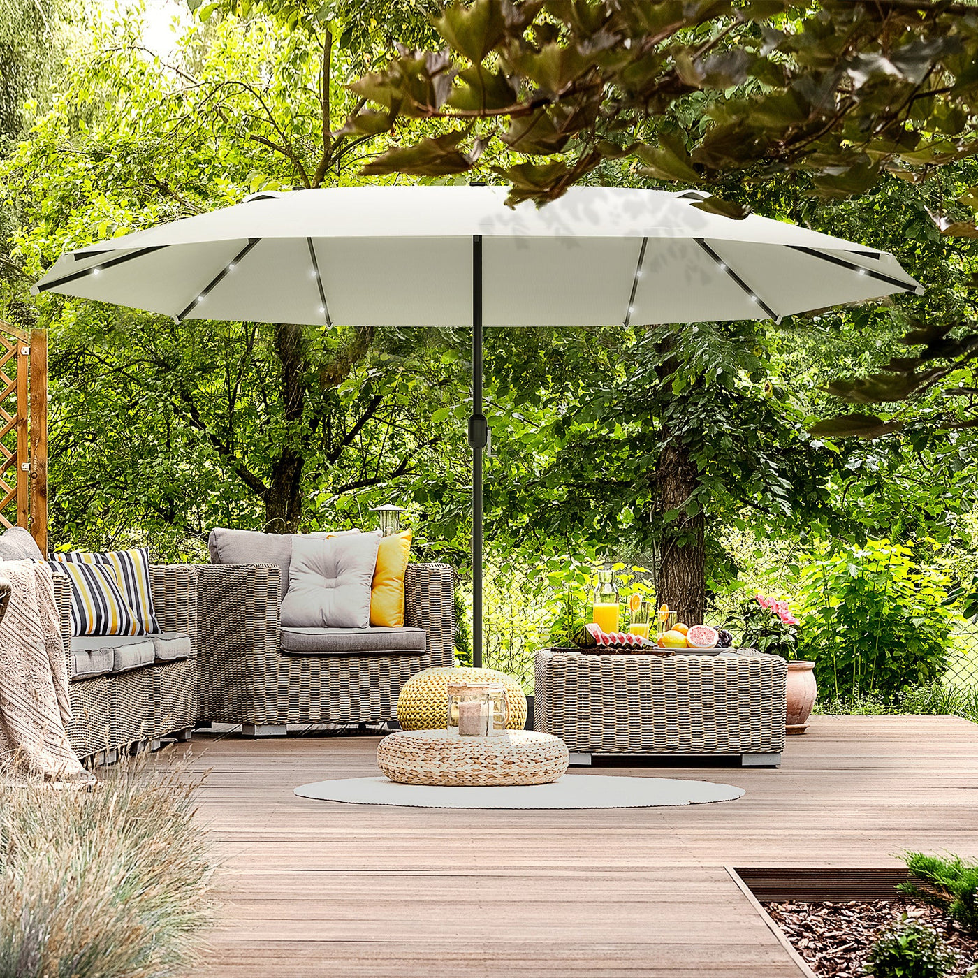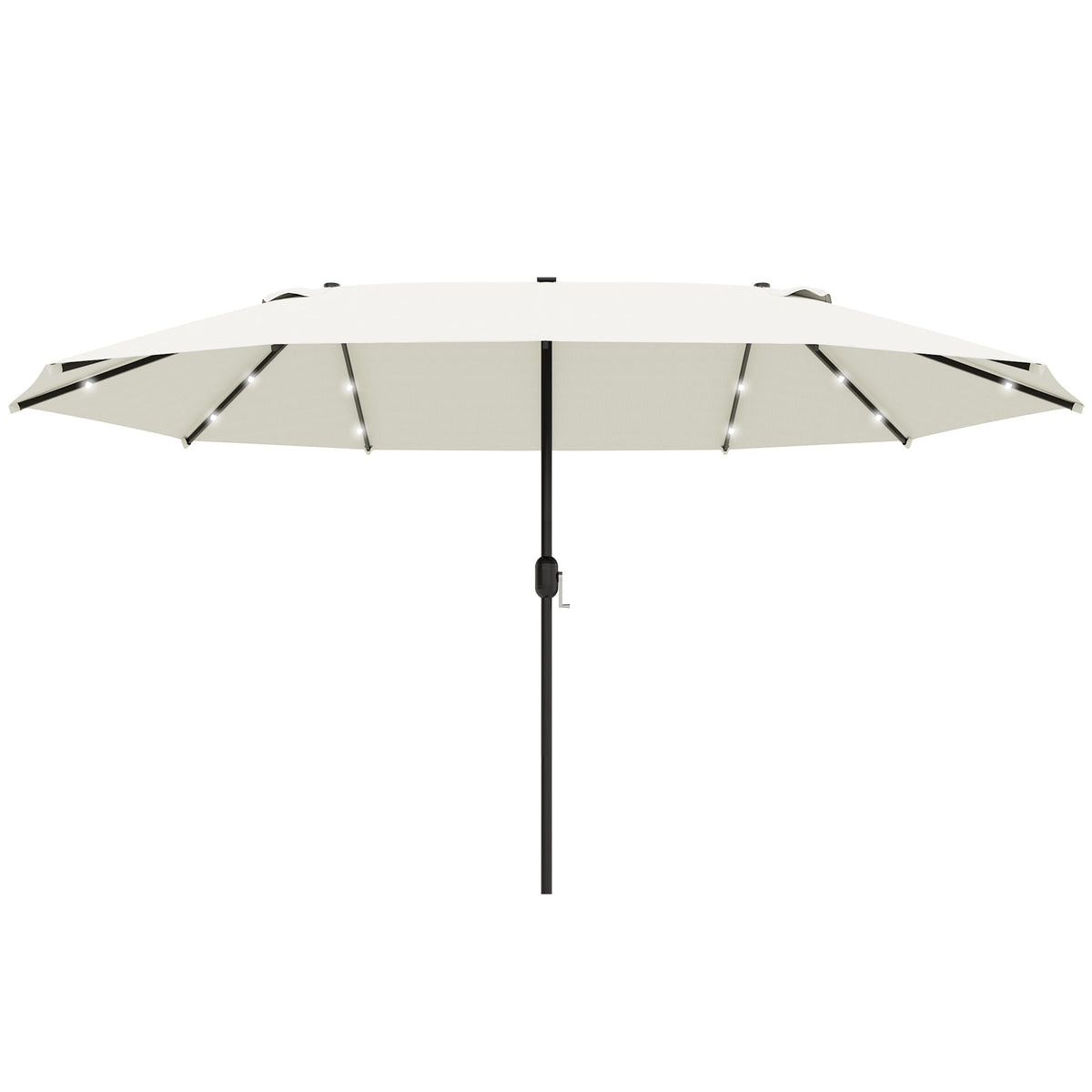 Outsunny 4.4m Double-Sided Sun Umbrella Patio Parasol LED Solar Lights Cream White - Cream White