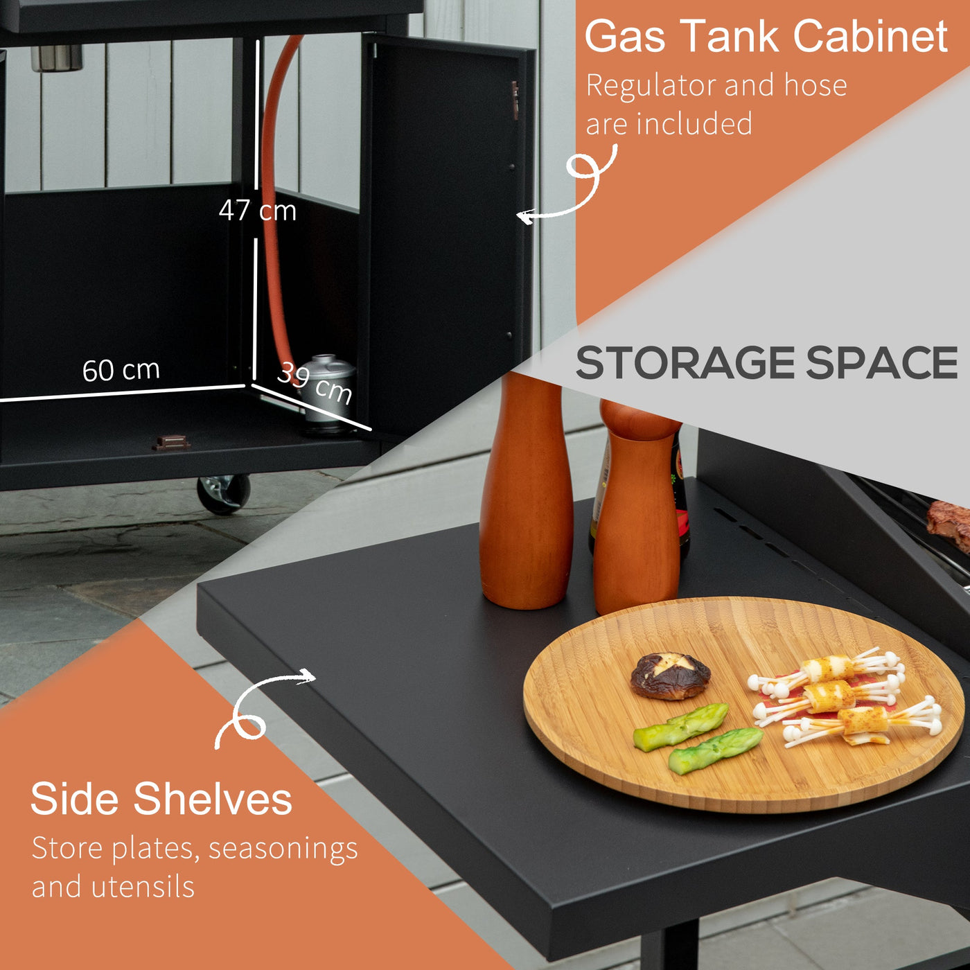 Outsunny 4 Burner Gas BBQ Grill Outdoor Portable Barbecue Trolley w/ Warming Rack, Side Shelves, Storage Cabinet, Thermometer - Black
