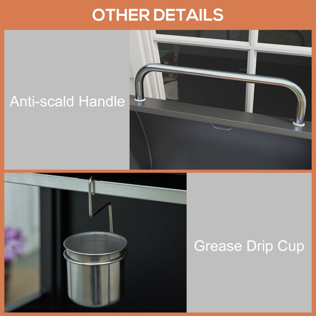 The delicious taste of summer is impeccably close with this Outsunny gas BBQ. There are four burners to create individual cooking zones - easy to cook a variety of food; paired with the large grill, it's suitable for hosting big BBQs. Each burner can be turned on easily with the piezo ignition. Unit features two side shelves, top warming rack and bottom cabinet - plenty of room. Pull the lid down when cooking for a smoked effect - finished with a thermometer to see the inner temperature.