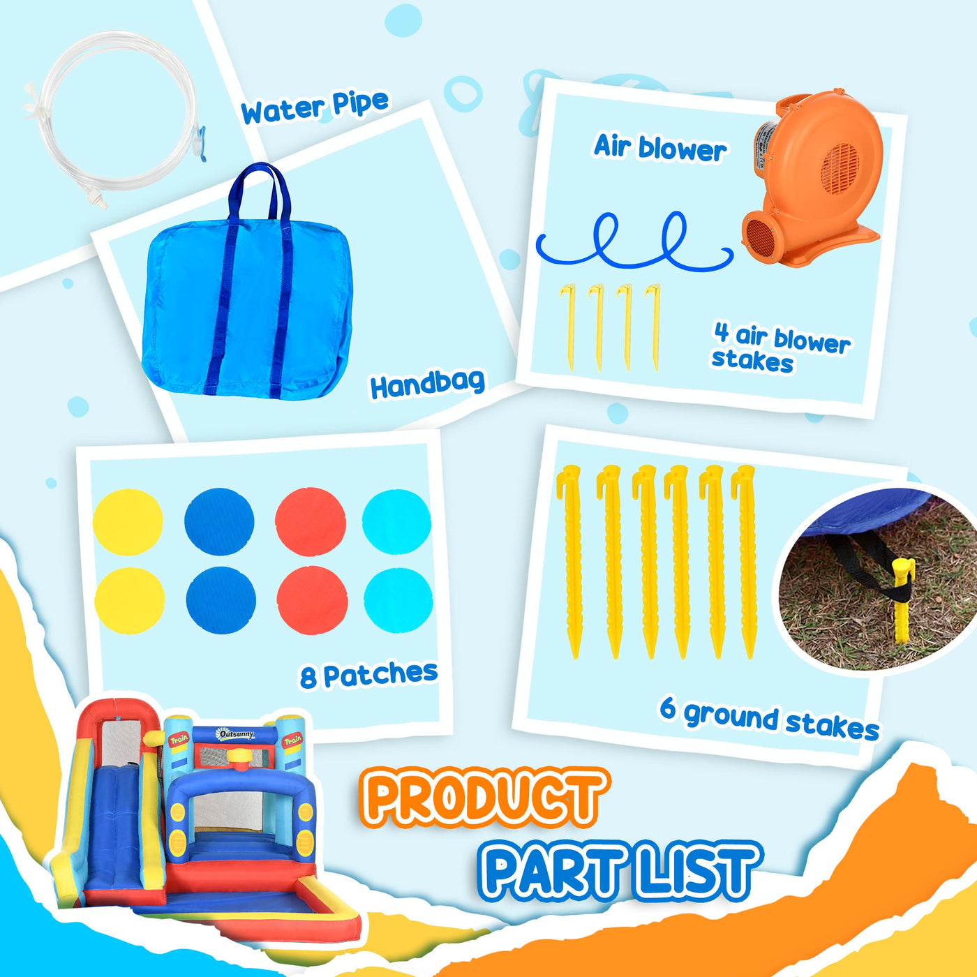 Turn your garden into a mini water park with this Outsunny bouncy castle! With so many fun features, kids will stay active and entertained for hours. Big enough for three children at once – great for parties and playdates. Ground stakes keep it secure, even on breezy days, while the included air blower gets it ready in minutes. Outdoor fun just got a whole lot better.