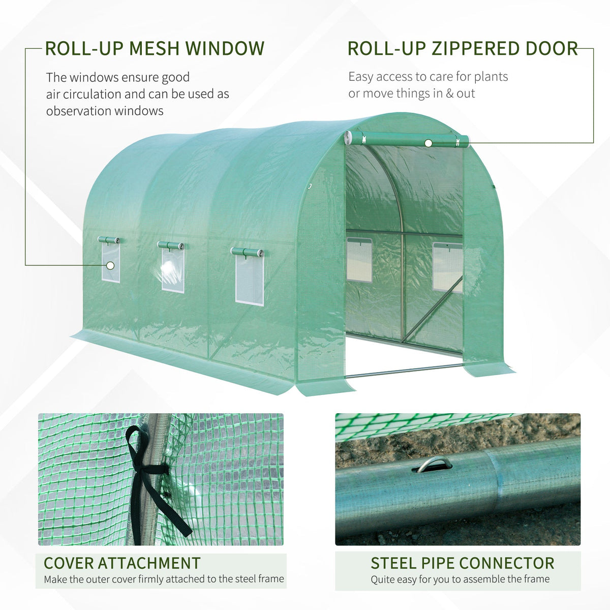 Outsunny 4 x 2 x 2 m Polytunnel Greenhouse with Roll-up Door and 6 Mesh Windows, Walk-in Garden Tunnel Warm House Tent with UV-resistant PE Cover and Galvanised Steel Frame, Green - green