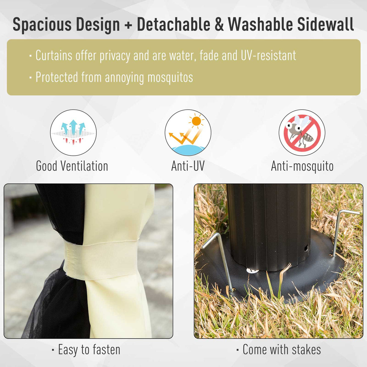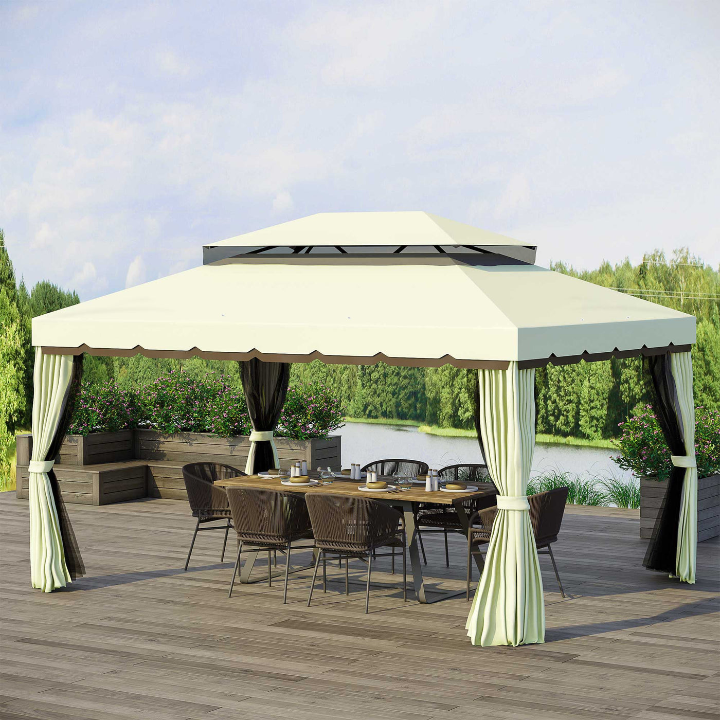 Outsunny 4 x 3 m Aluminum Garden Gazebo, Double Roof Outdoor Gazebo Canopy Shelter with Netting & Curtains for Garden, Lawn, Backyard and Deck, Cream - Cream
