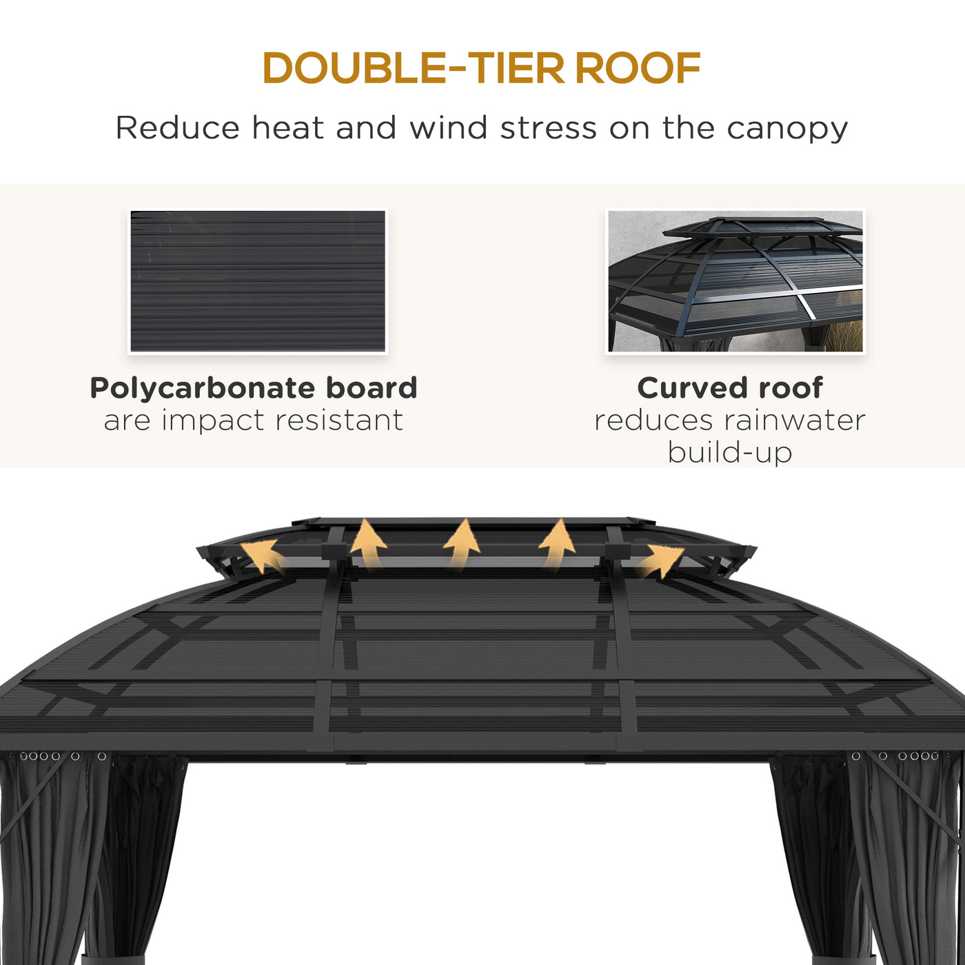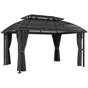 Outsunny 4 x 3m Aluminium Frame Hard Gazebo, with Accessories - Black - Black