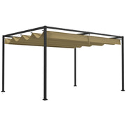 Outsunny 4 x 3(m) Metal Pergola with Retractable Roof, Garden Gazebo Canopy Shelter for Outdoor, Patio, Khaki - Khaki