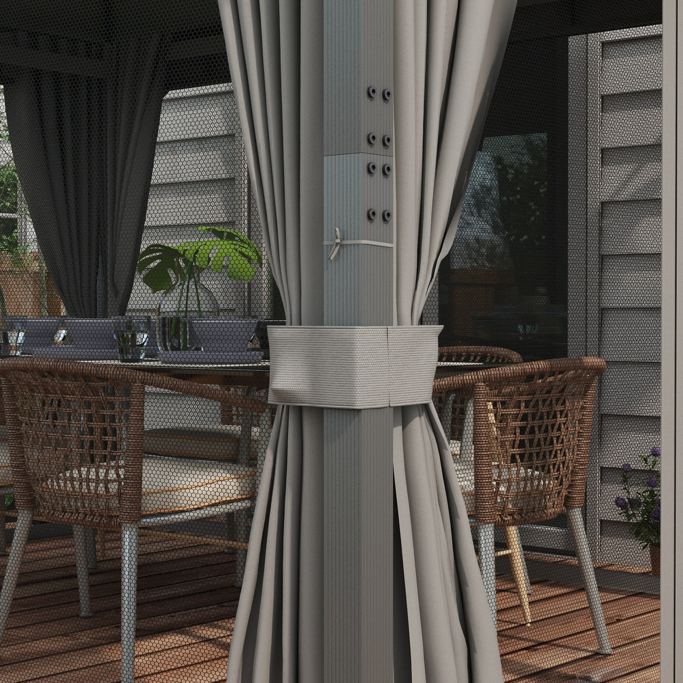 This 4 x 3(m) spacious hot tub gazebo with sides from Outsunny is a great way to upgrade your outdoor space with elegance. You can entertain your friends and family members to hold the party or just relax and enjoy the conversation. It features the rust-resistant aluminium frame with the UV protection polyester canopy and 2 layer sidewalls for strength and full shade. You deserve some comfort in the sun: create your own personal oasis with our grey gazebo.
