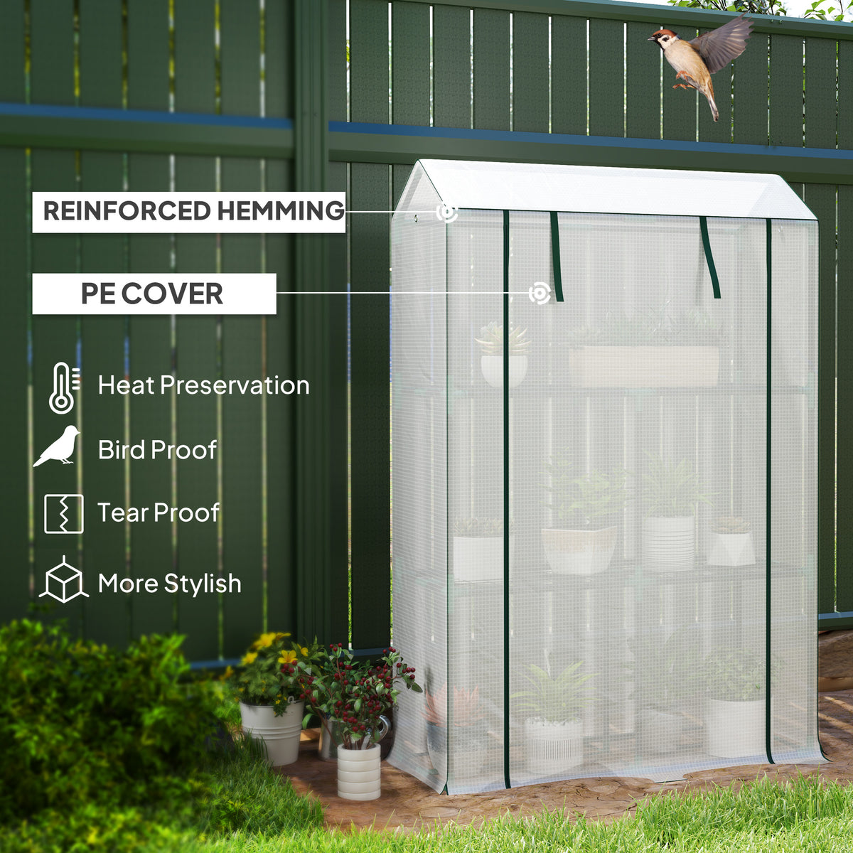 Outsunny 40 x 100cm Three Shelf Steel Frame Greenhouse - White - White