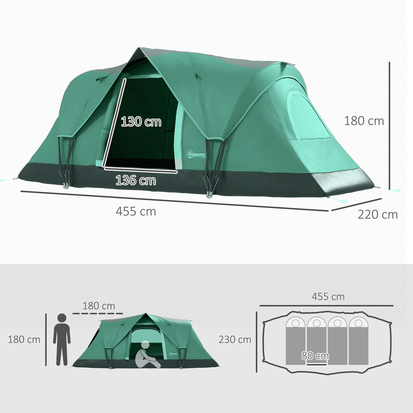 Outsunny 5-6 Man Dome Camping Tent - Dark Green - Green