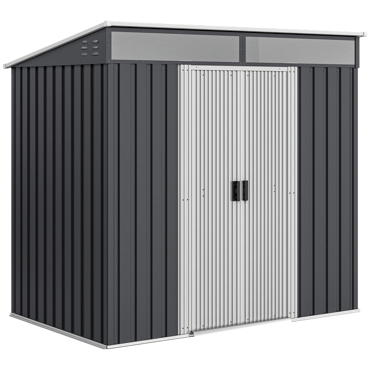 Outsunny 6.5 x 4FT Galvanised Metal Shed with Foundation Kit, Lockable Tool Garden Shed with Double Sliding Doors, Vents, Grey - Grey