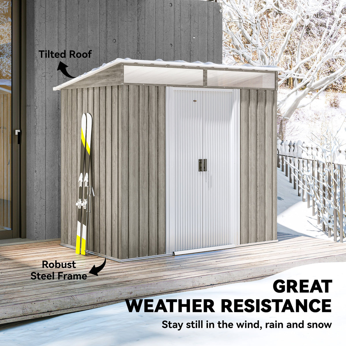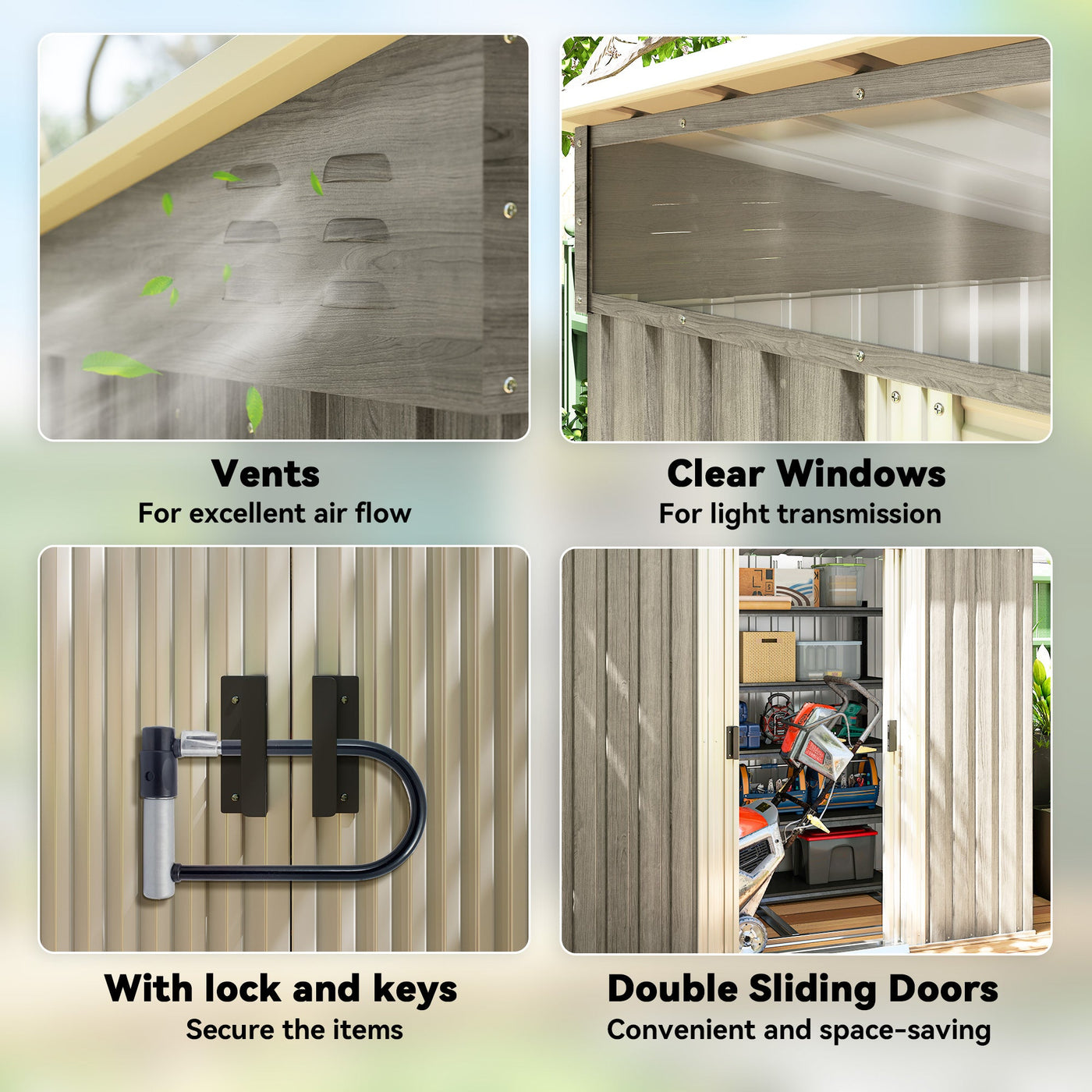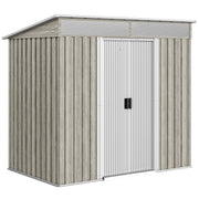 Outsunny 6.5 x 4FT Galvanised Metal Shed with Foundation Kit, Lockable Tool Garden Shed with Double Sliding Doors, Vents, Light Grey Wood Effect - Light Grey