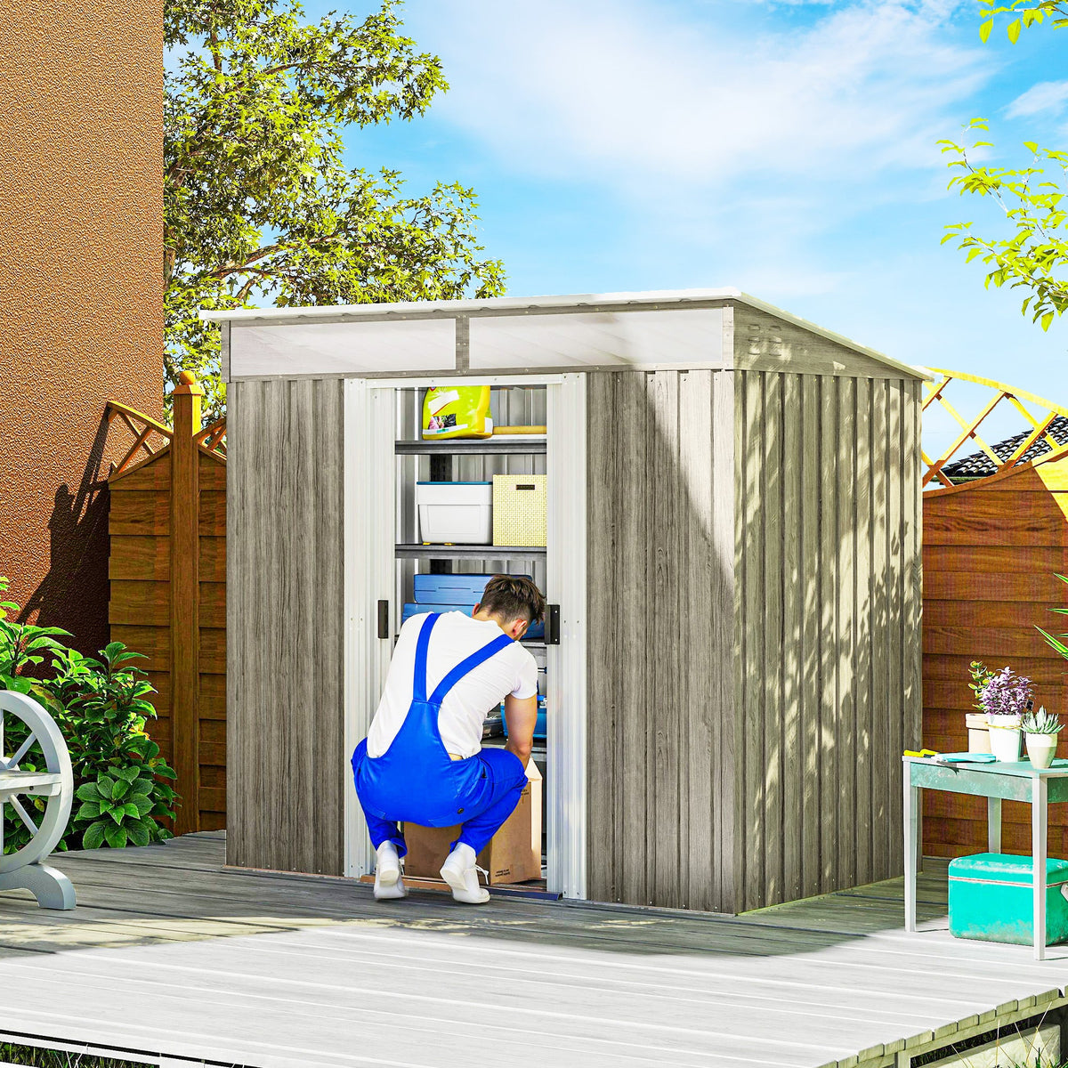 Securely store your garden equipment in the Outsunny 6.5 x 4ft metal shed. Made from resilient galvanised steel, this shed boasts a spacious interior for tools, two windows for natural light and ventilation slots for air circulation. A sliding door with lock and key ensures easy access and security.