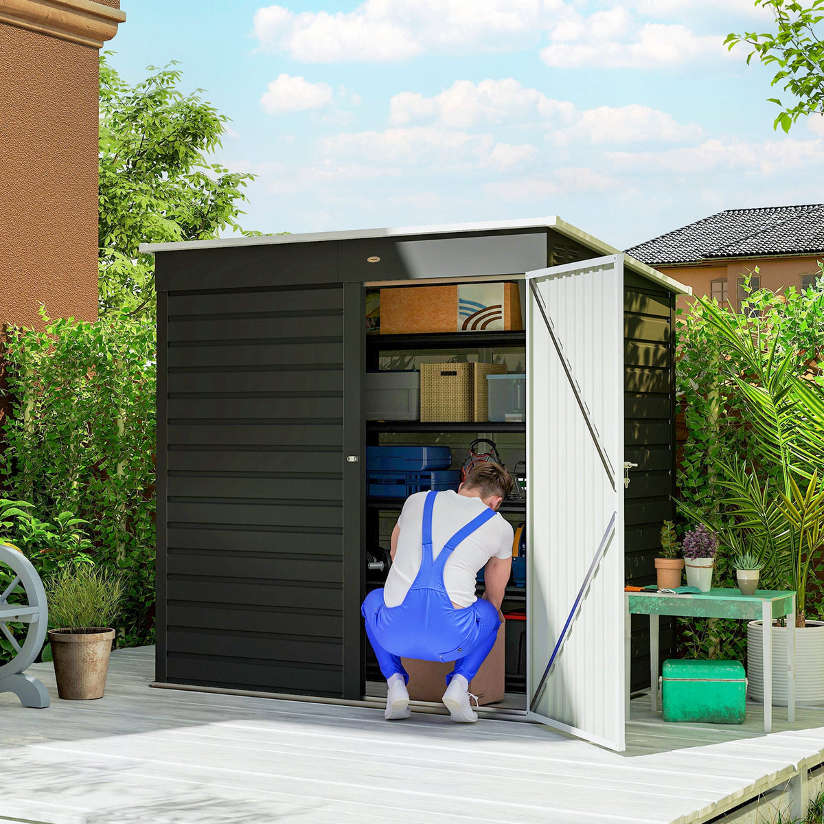 Outsunny 6 x 4ft Metal Garden Storage Shed, Outdoor Tool Storage Shed with Lockable Door and Gloves for Garden, Patio, Dark Grey - Dark Grey