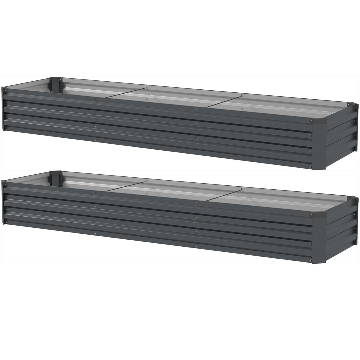 Outsunny 60 x 240cm Galvanised Steel Planter, with Open Bottom, Pack of 2 - Dark Grey