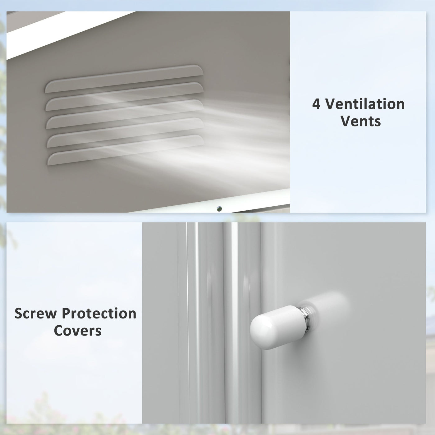 This Outsunny tool shed is the top place to keep your tools, garden equipment and outerwear stored and protected. It's made from galvanised steel - a tough and durable shell, resistant to mild weather and rusting. The sloping roof helps prevent rain water from accumulating, so it doesn't seep through and damage inner items. Metal garden shed is complete with a double sliding door for easy access, plus four ventilation slots to keep inside aerated and fresh.