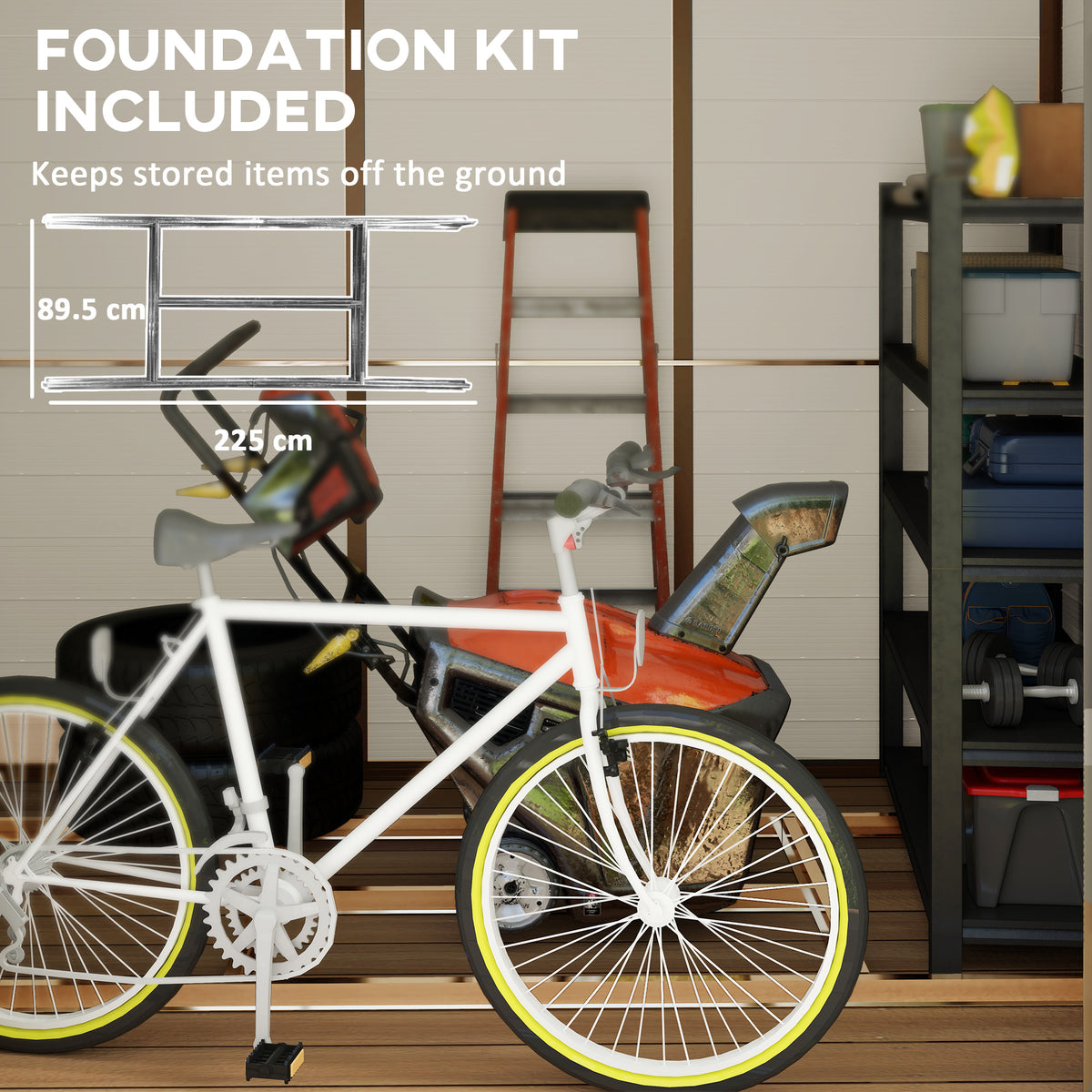 Outsunny 7.9ft x 6.2ft Aluminium Frame and Plastic Wall Shed, with Foundation - Cream White - Cream