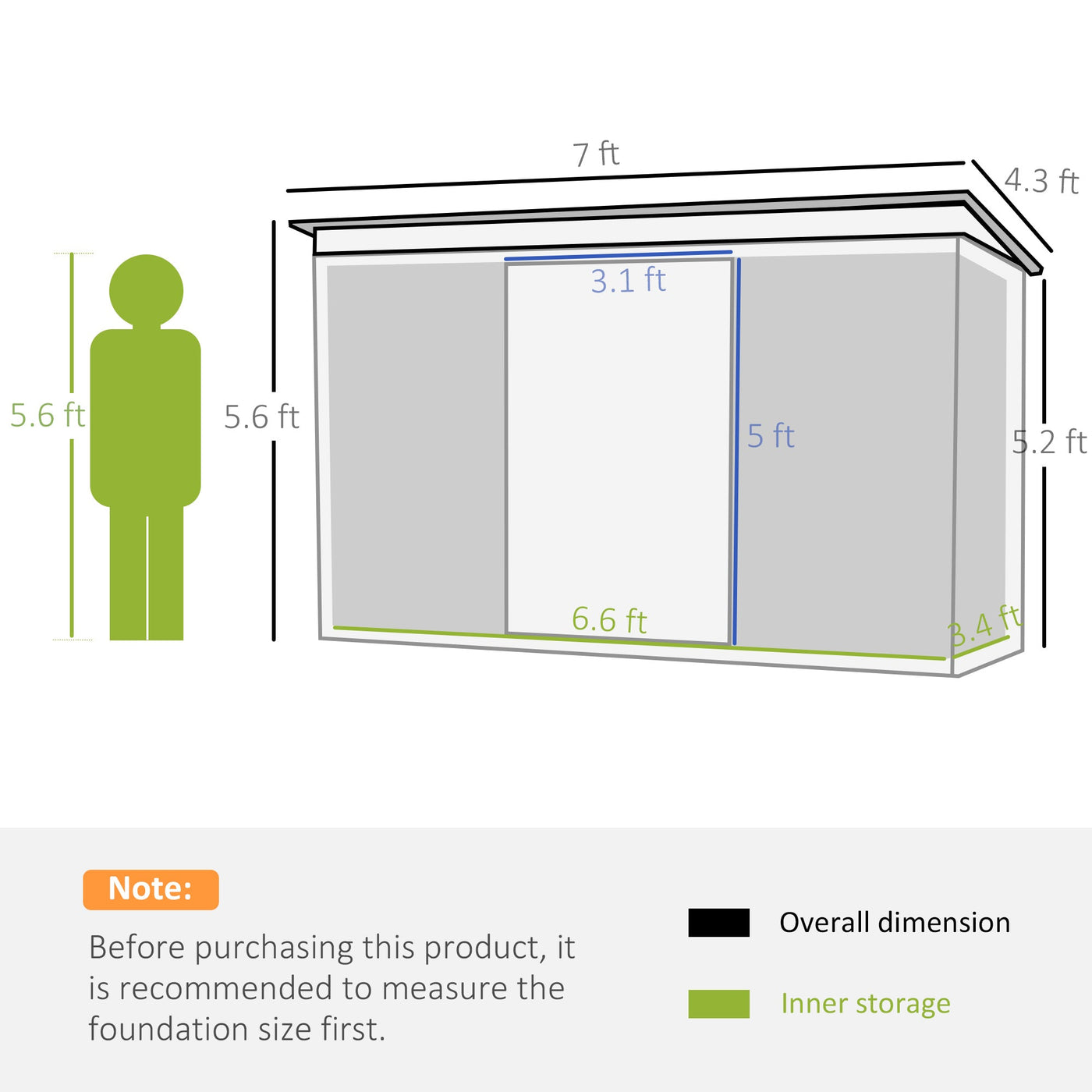 Outsunny 7 x 4ft Galvanised Steel Garden Shed, with Foundation Kit - Green - Green