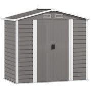 Outsunny 7 x 4ft Garden Shed, Easy to Assemble, Upgraded Galvanised Steel Frame with Foundation Kit, Double Doors with Lock, Outdoor Metal Shed with Vents and Gloves, Garden Storage Shed, Light Grey - Light Grey