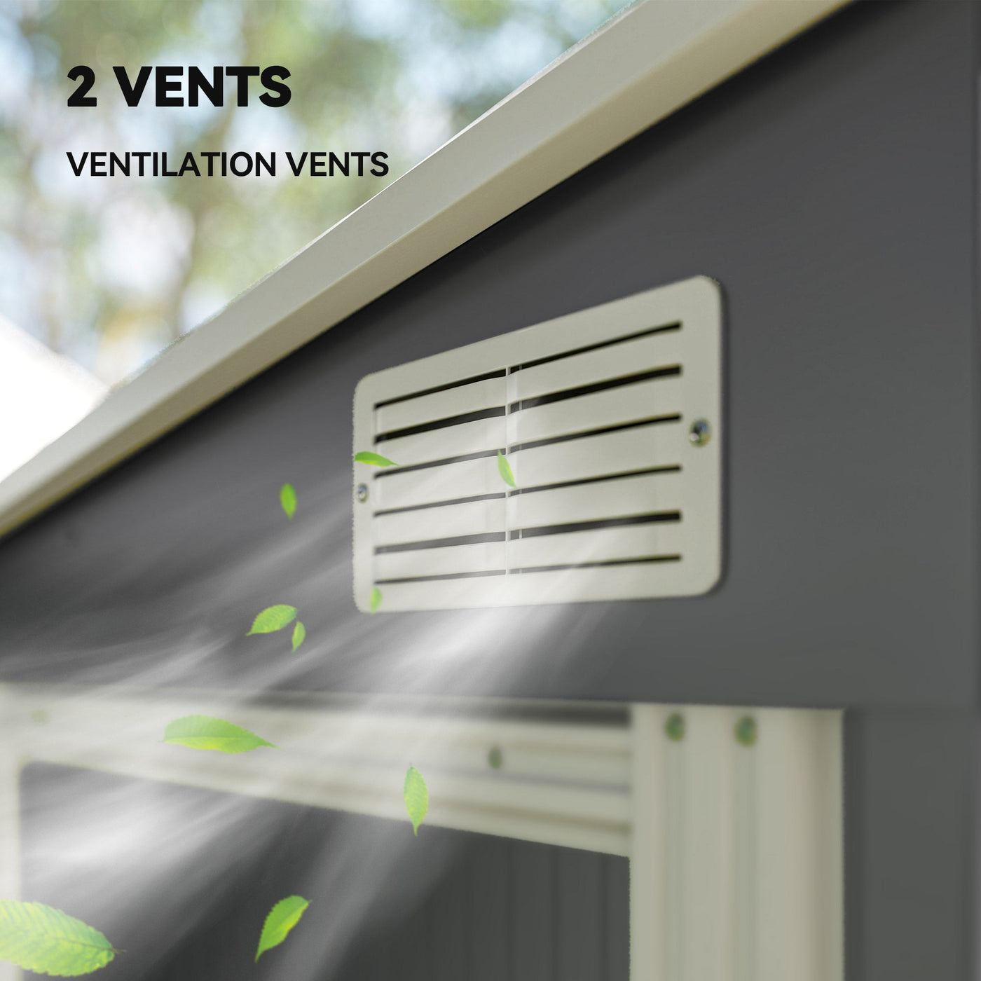 Add storage to your outdoor space with this 7 x 5ft Outsunny metal shed. The galvanised steel shell is strong and suitable for outdoors. The ventilation slots brings air inside to keep this tool shed fresh. Spacious enough for you tools, longer equipment and a bike.